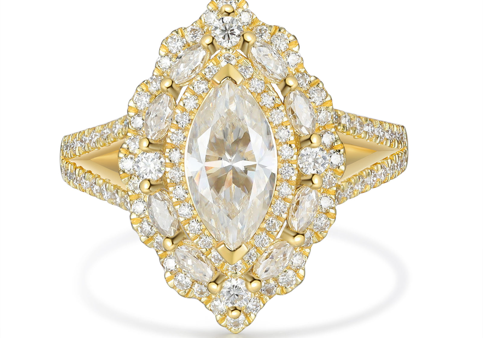 Double Halo 1 Carat Diamonds in 14kt Yellow Gold