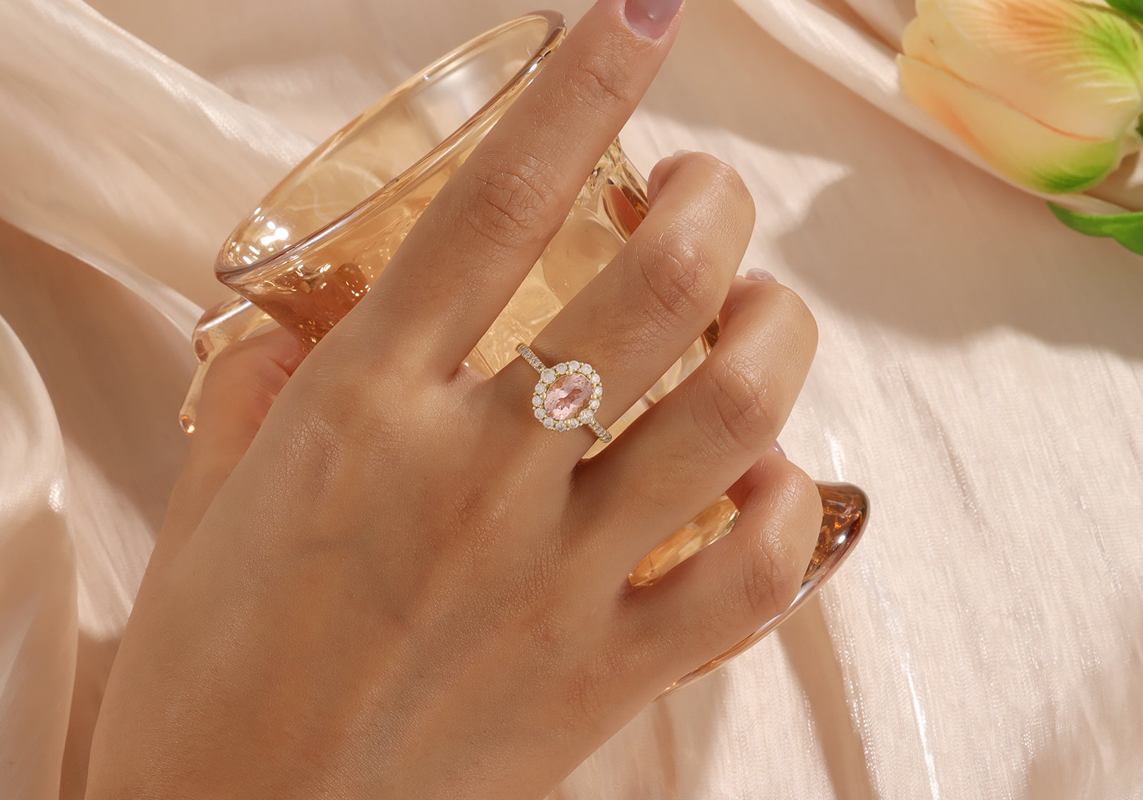 Natural Morganite Ring 18K Gold