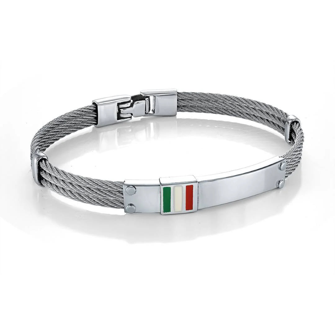 S.STEEL 3-ROW-CABLE SQUARE-ITALY-FLAG BANGLE
