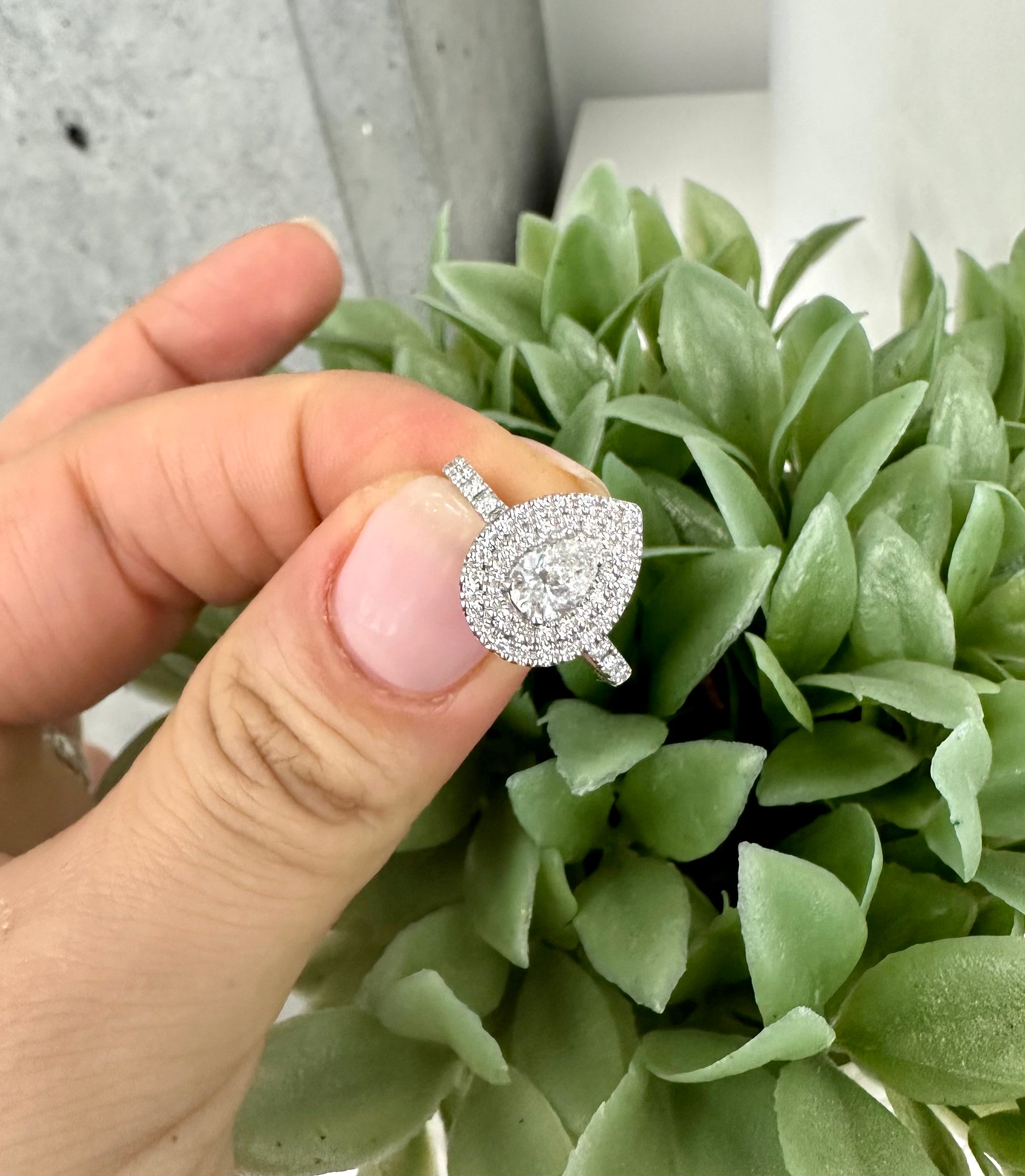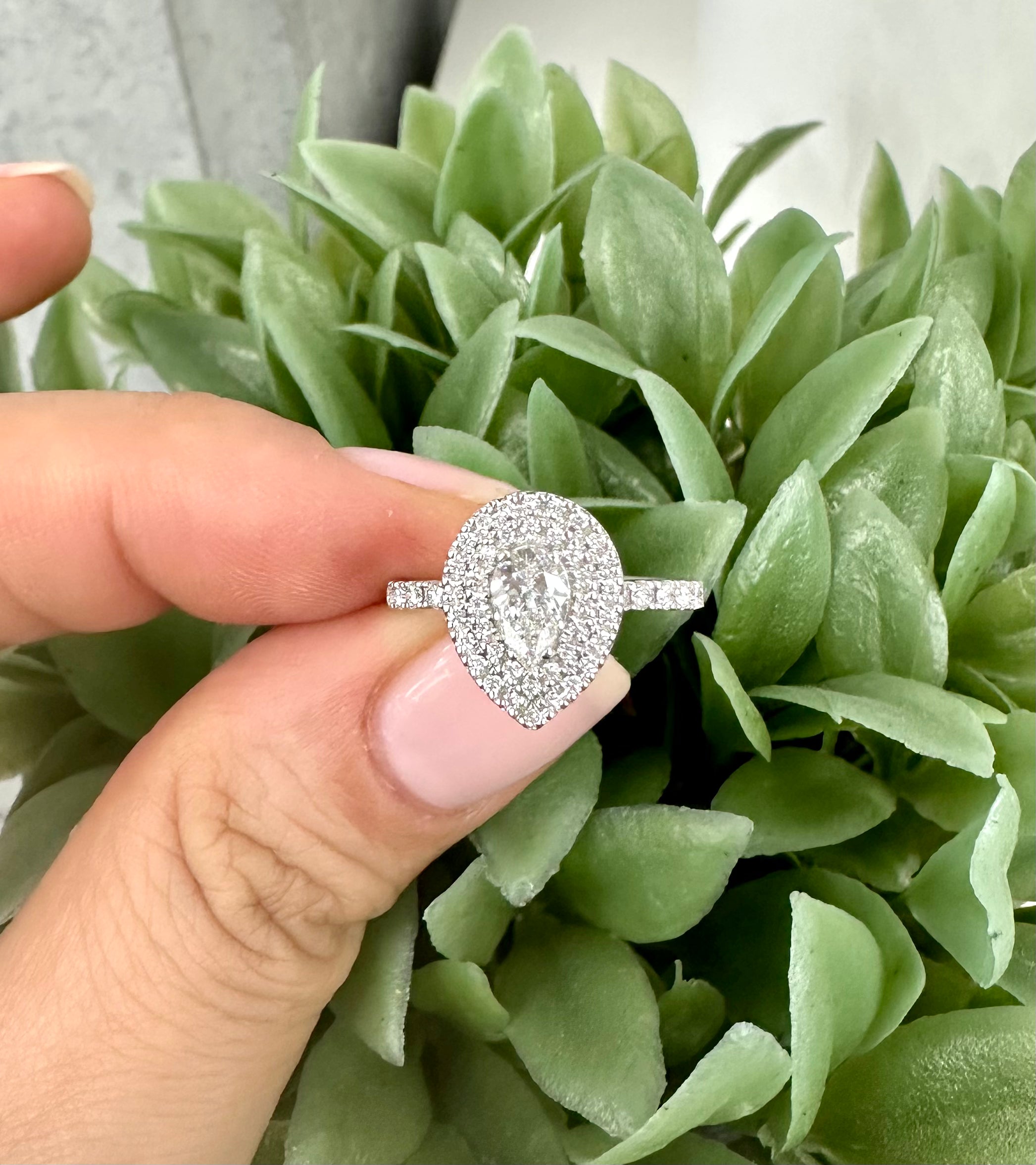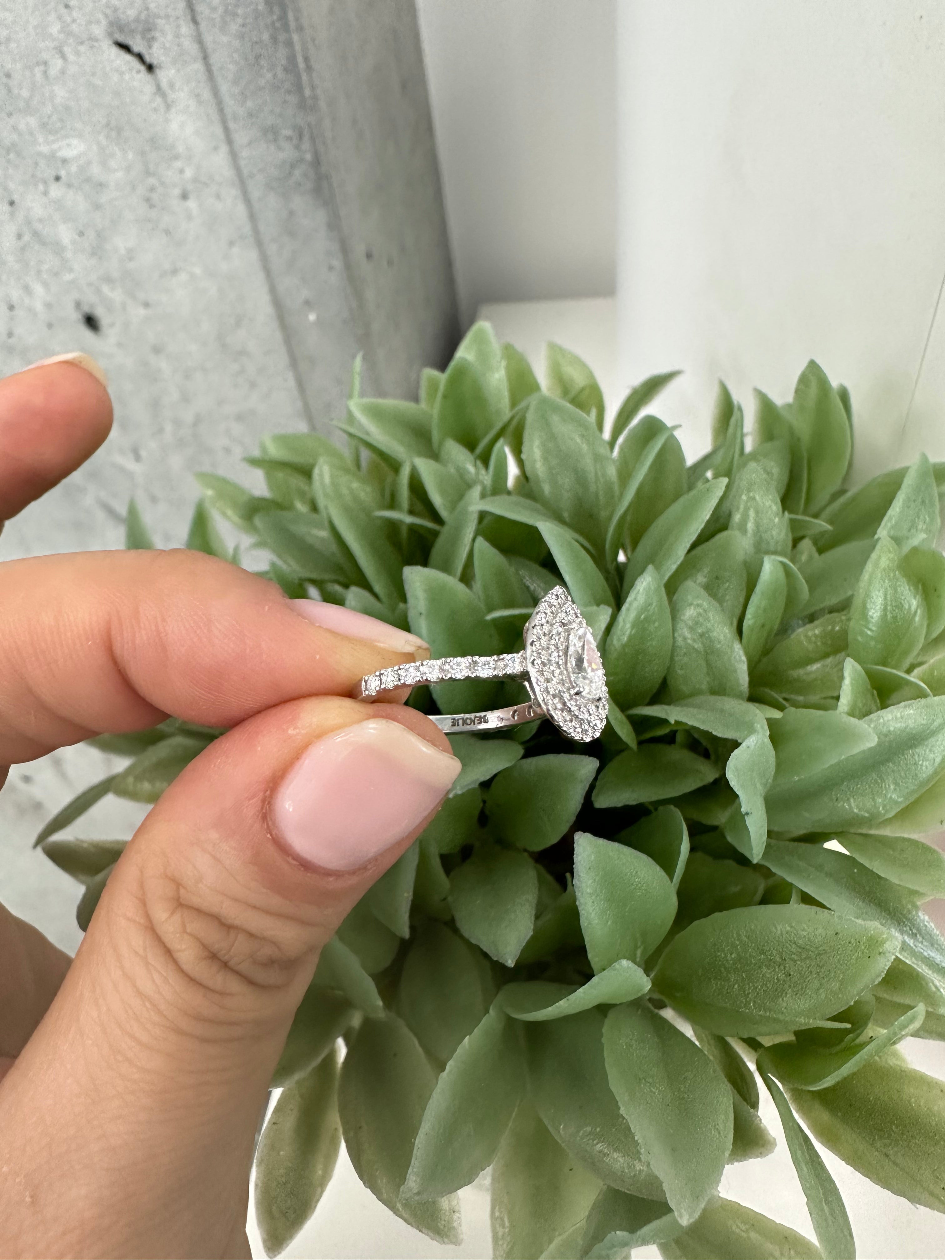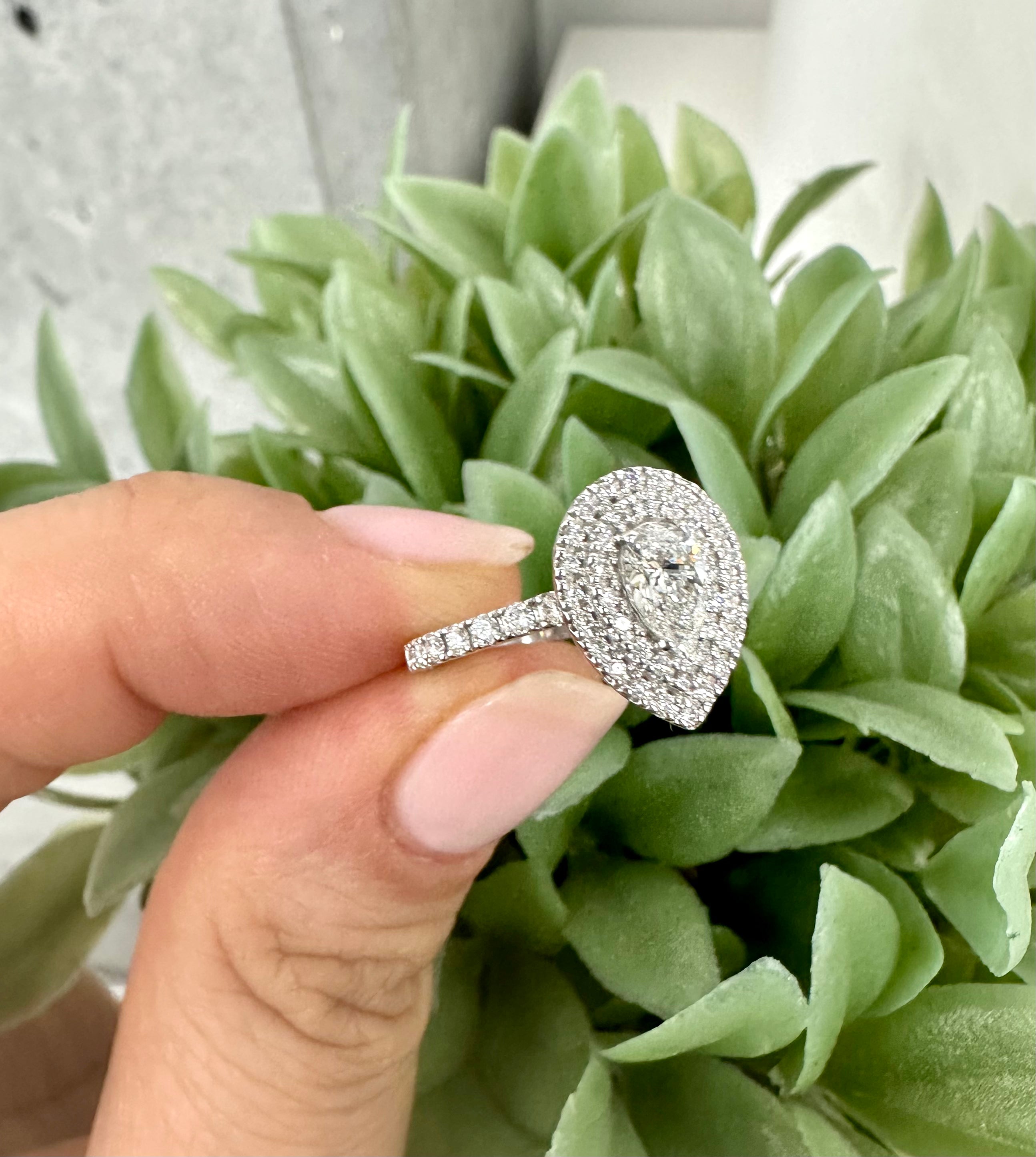 Bague de fiançailles diamant forme poire Halo