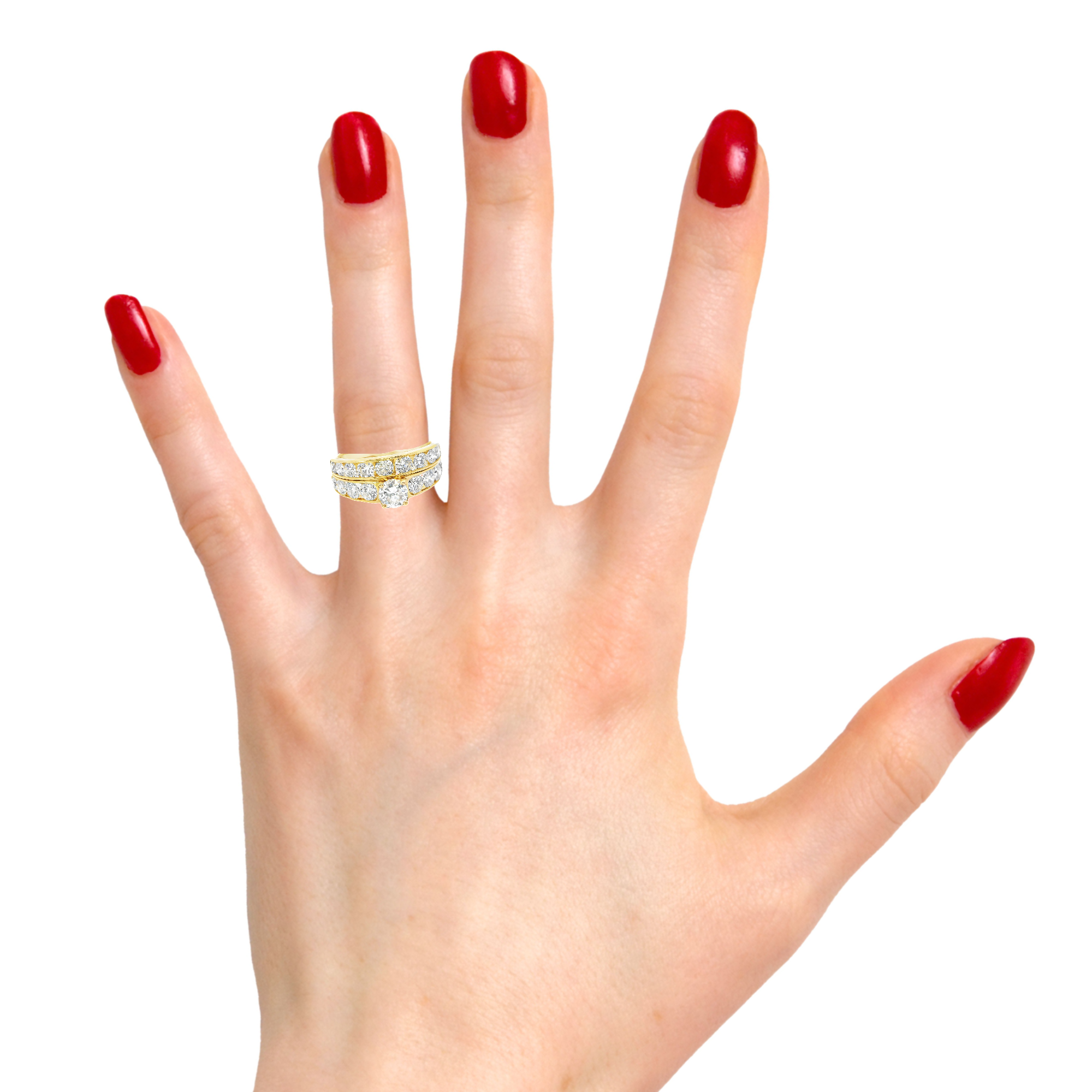 Découvrez le luxe et l'élégance avec notre élégante parure de bagues en diamant. Réalisée en or jaune et diamants étincelants, elle apportera une touche de glamour à toutes vos tenues. Affirmez votre style et sublimez votre style avec cette magnifique parure. Idéale pour les grandes occasions ou comme cadeau.