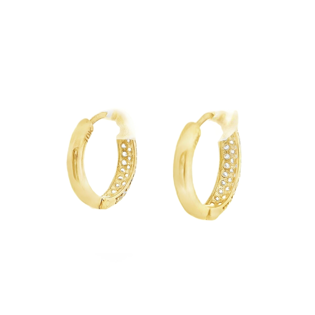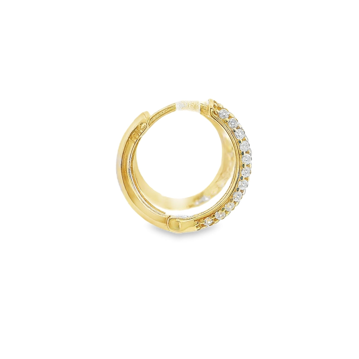Indulge in luxury with our 10K gold CZ huggees, featuring dazzling hoop earrings that add a touch of elegance to any outfit. Upgrade your jewelry collection and stand out with these gorgeous gold earrings!