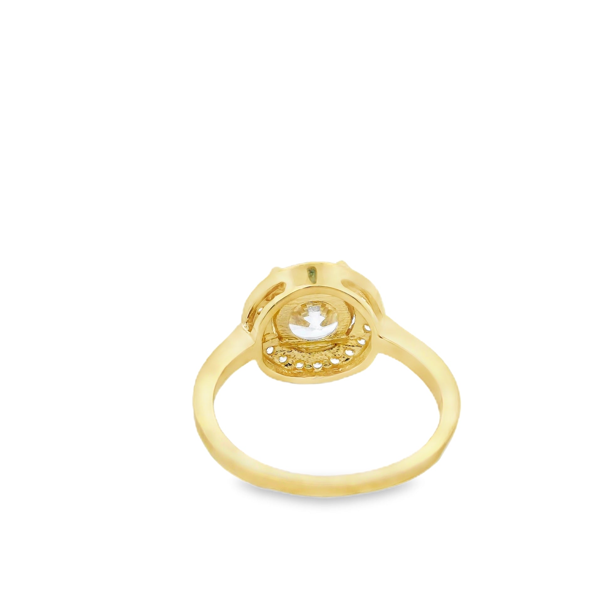 Bague en or jaune 10 carats, les pierres sont des zircones cubiques. Bague solitaire