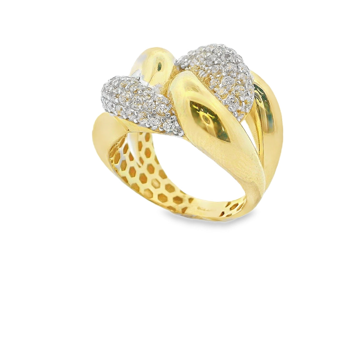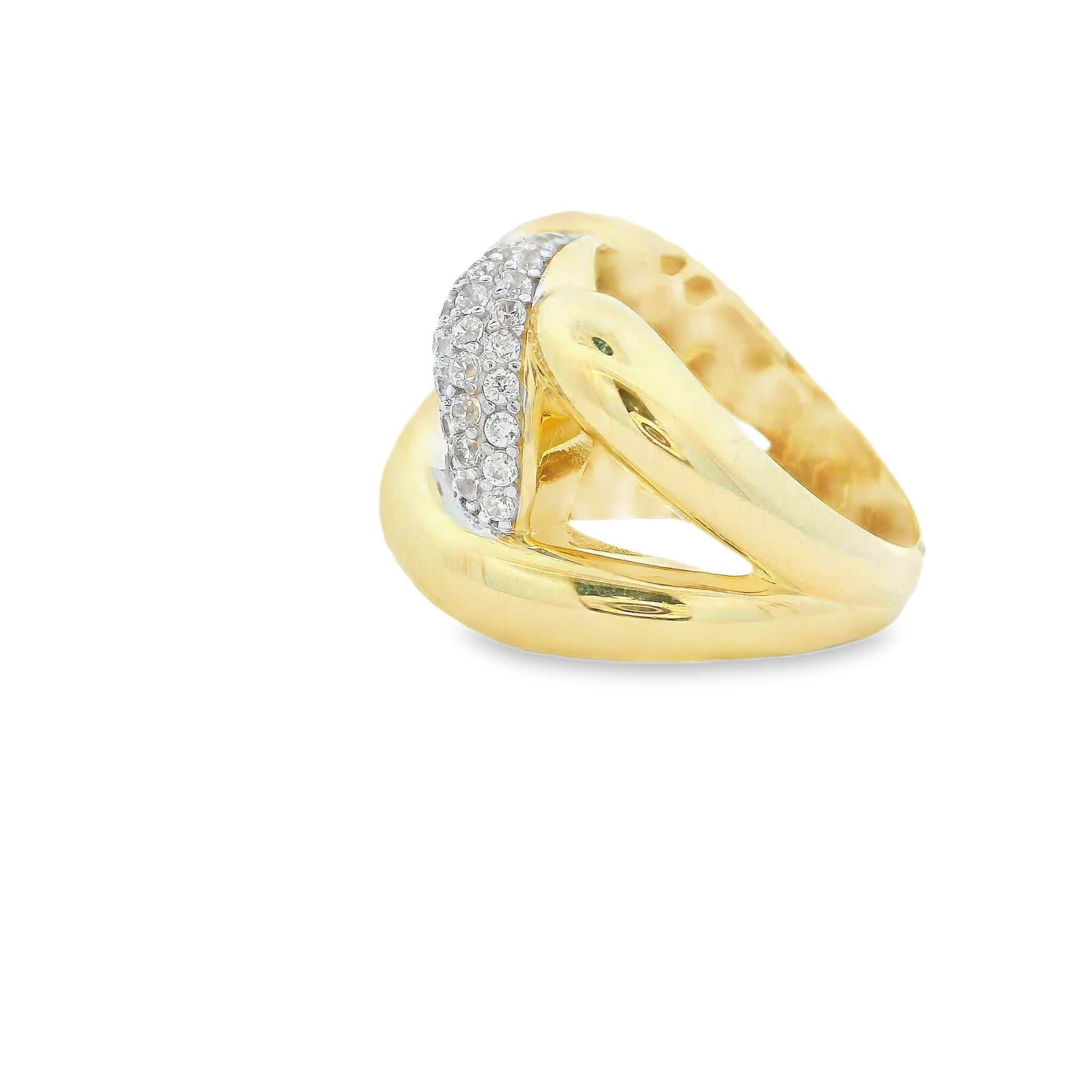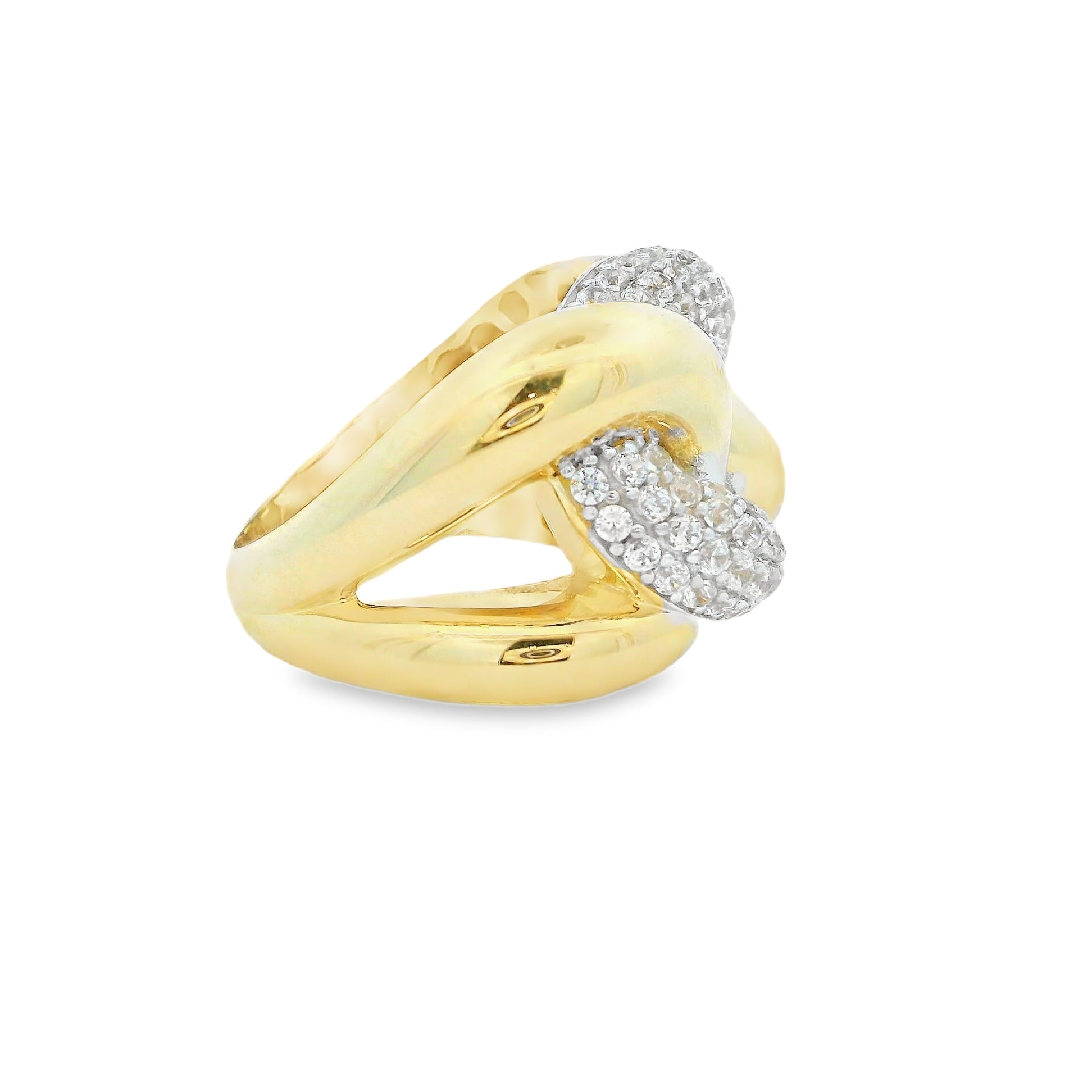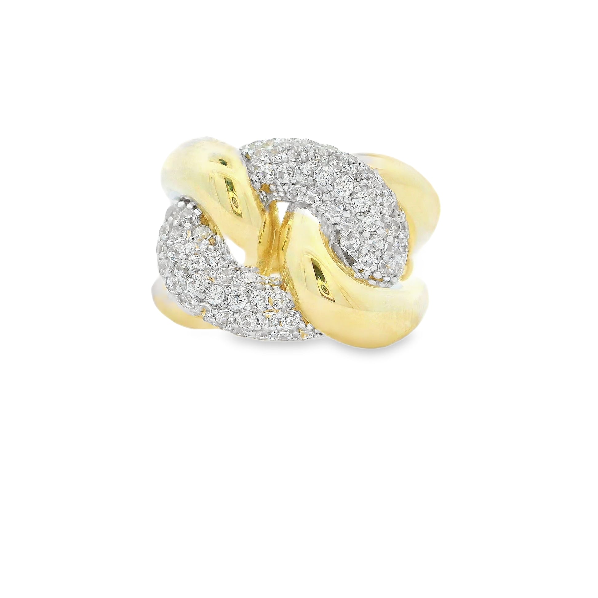 Bague en or jaune 10 carats, les pierres sont des zircones cubiques. Bague solitaire