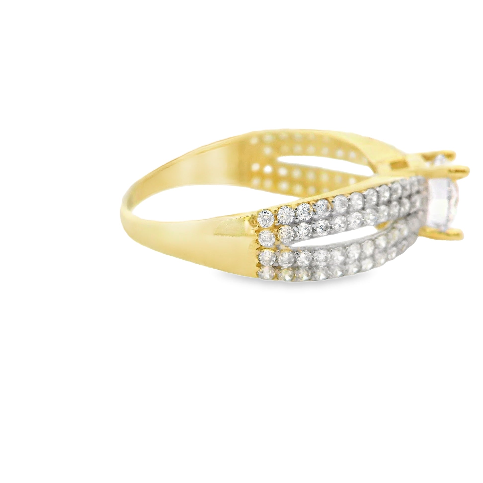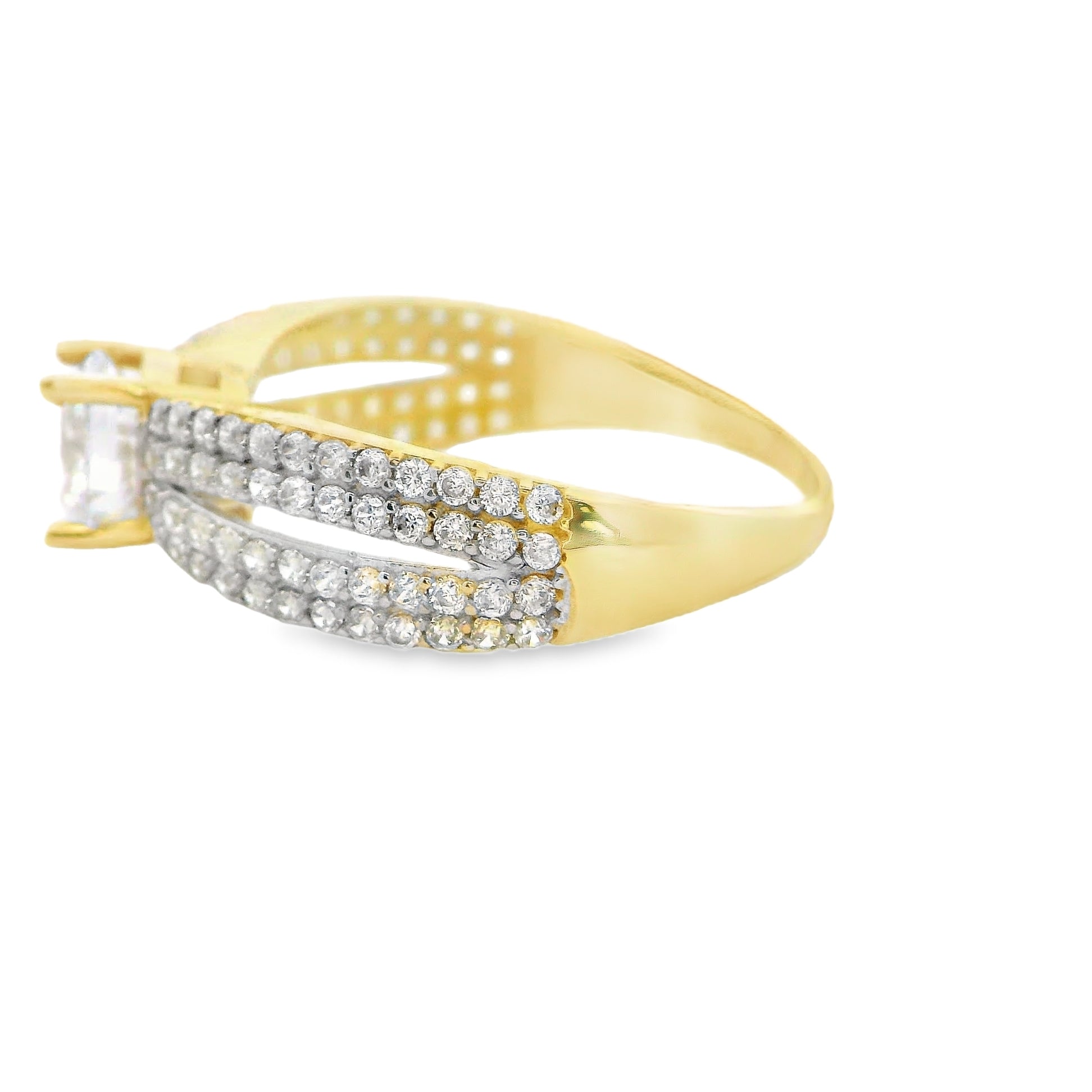 Bague en or jaune 10 carats, les pierres sont des zircones cubiques. Bague solitaire
