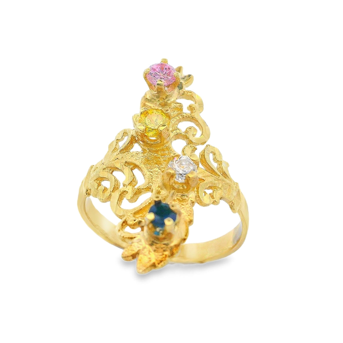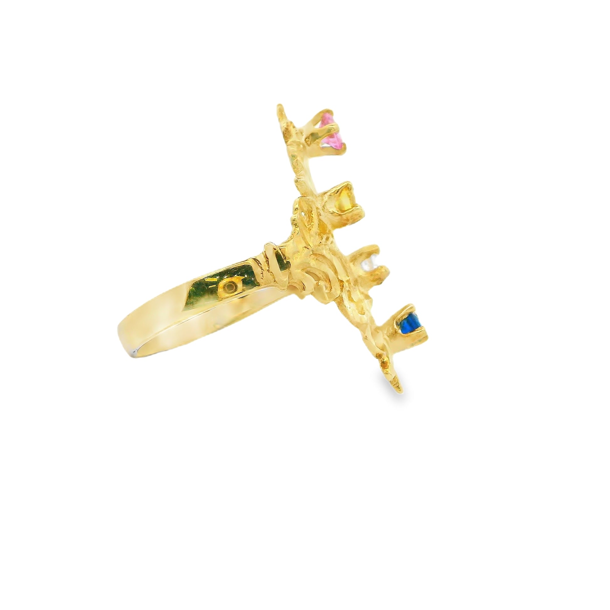 Bague en or jaune 10 carats, les pierres sont des zircones cubiques. Bague solitaire