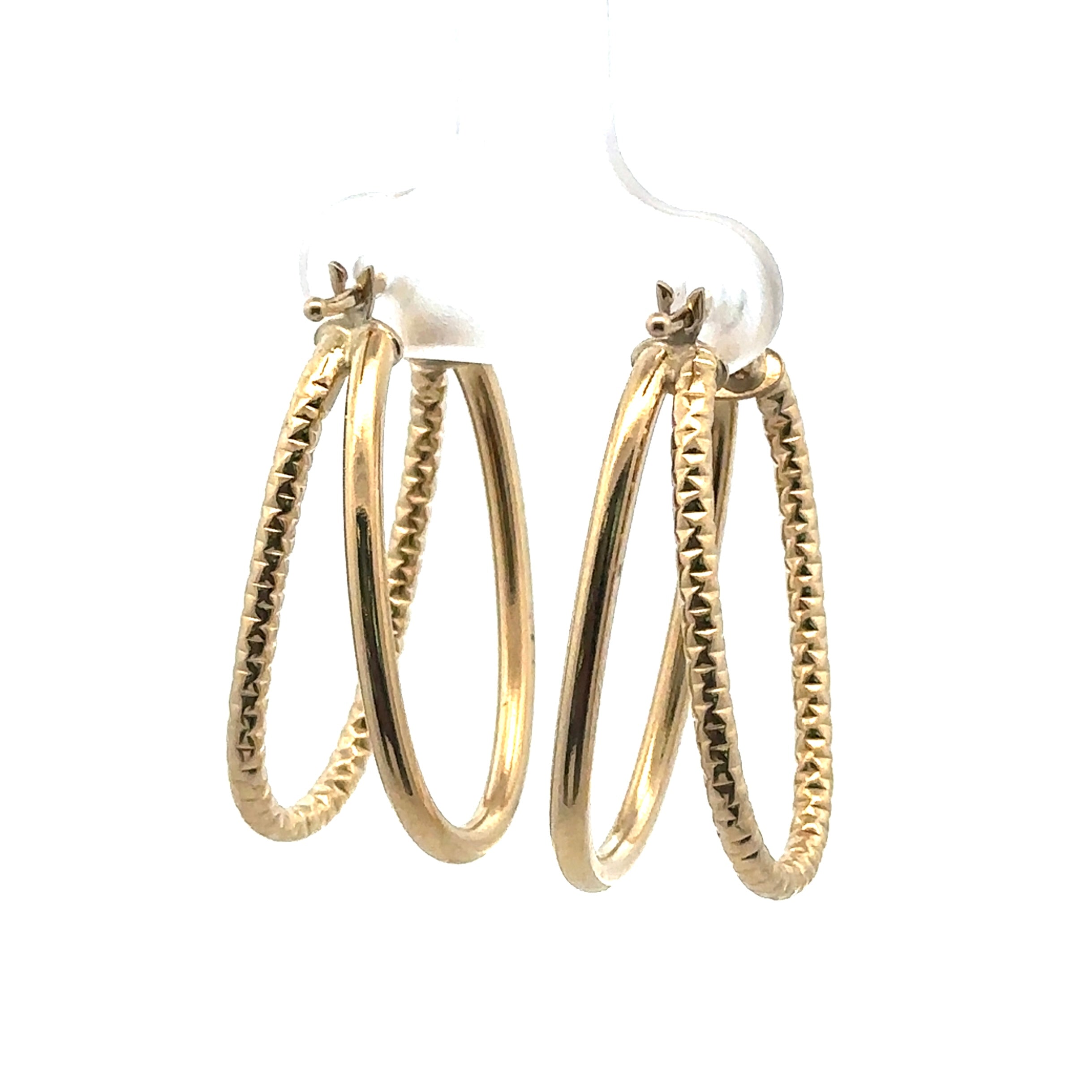 • Véritable or jaune 10 carats. Une paire de boucles d'oreilles créoles (2 pièces).