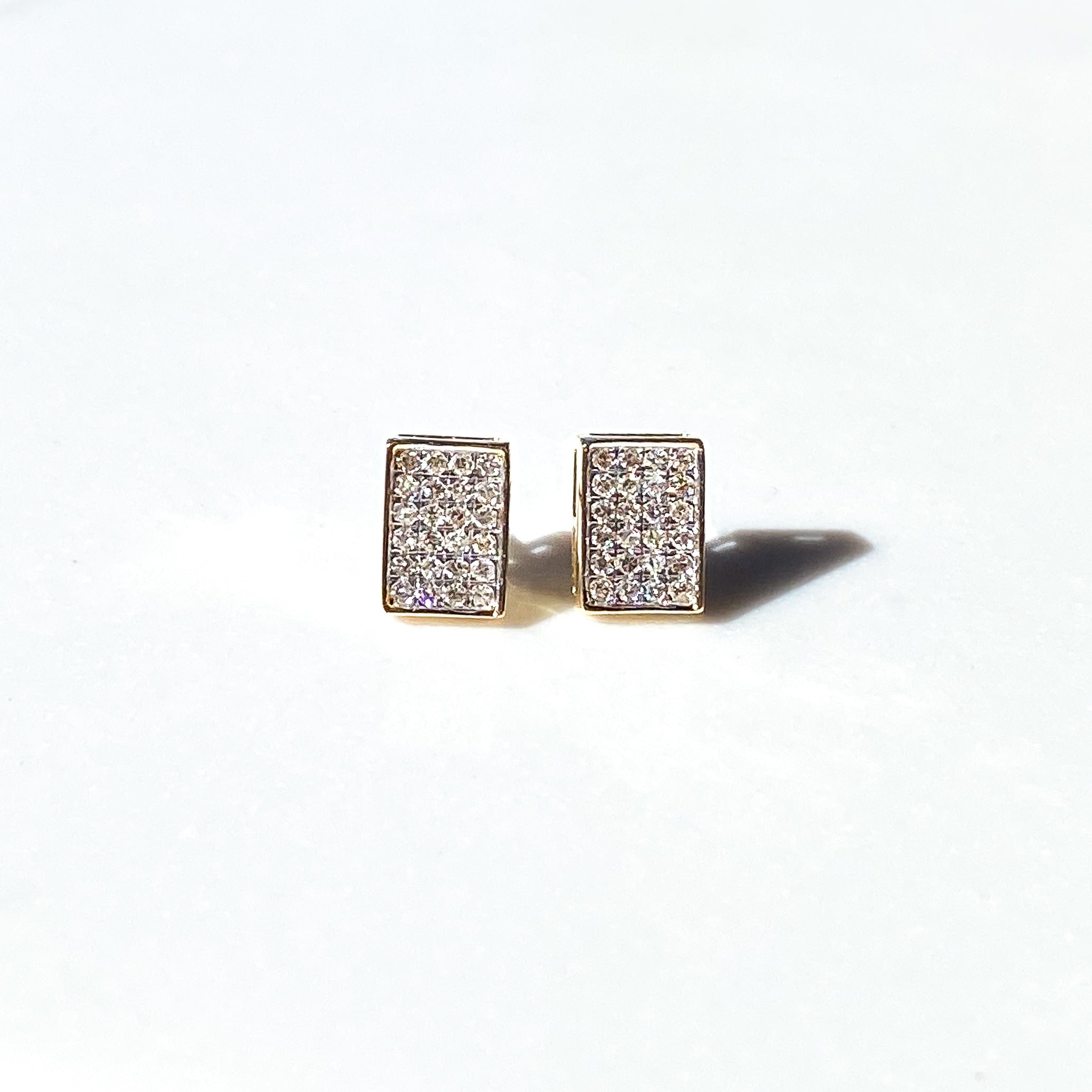 Ces boucles d'oreilles rectangulaires glacières sont en or jaune 10 carats. Tous les diamants sont sertis à la main par un maître sertisseur de diamants avec un savoir-faire de la plus haute qualité. Ces pièces sont en or massif.