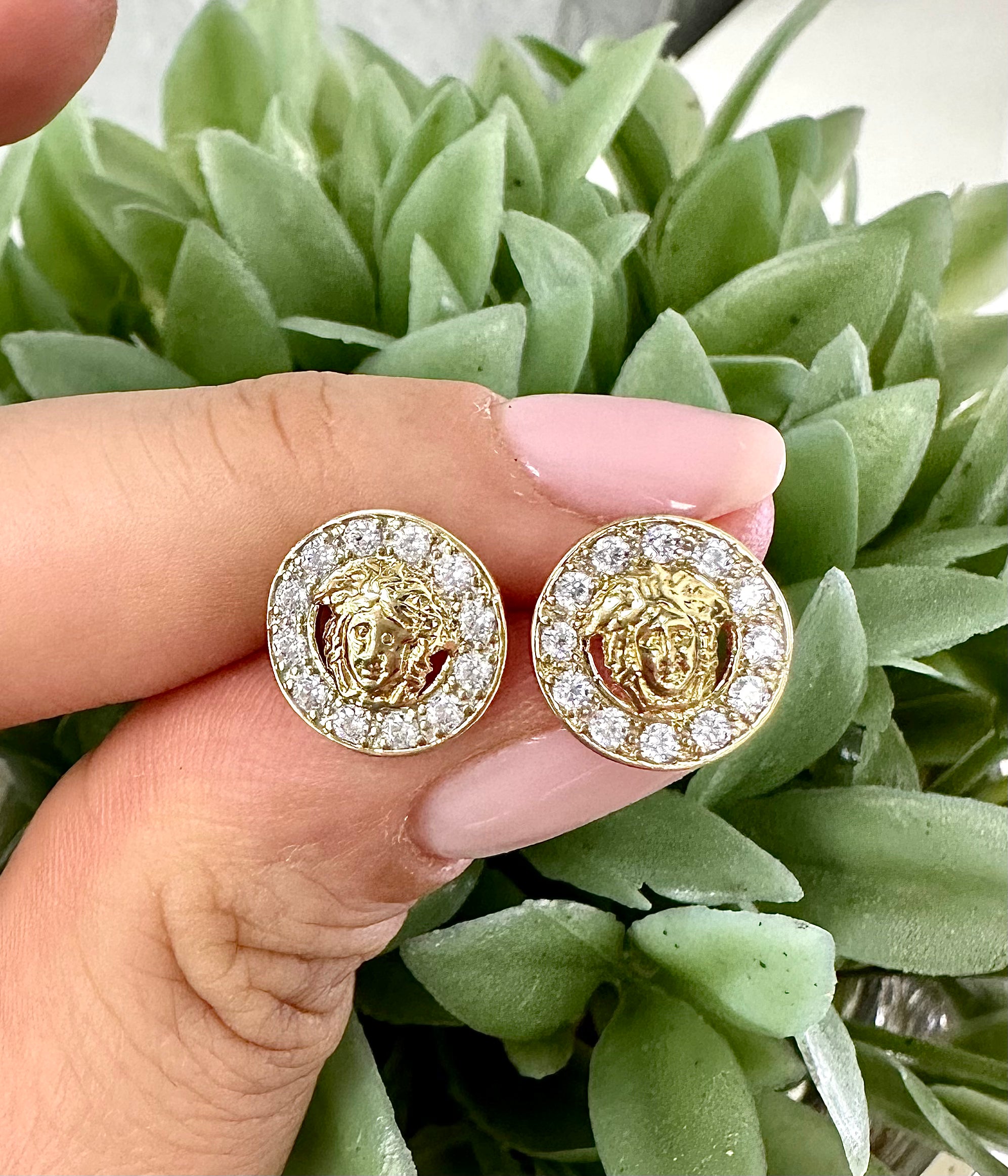 Boucles d'oreilles Halo Medusa, or 10 carats
