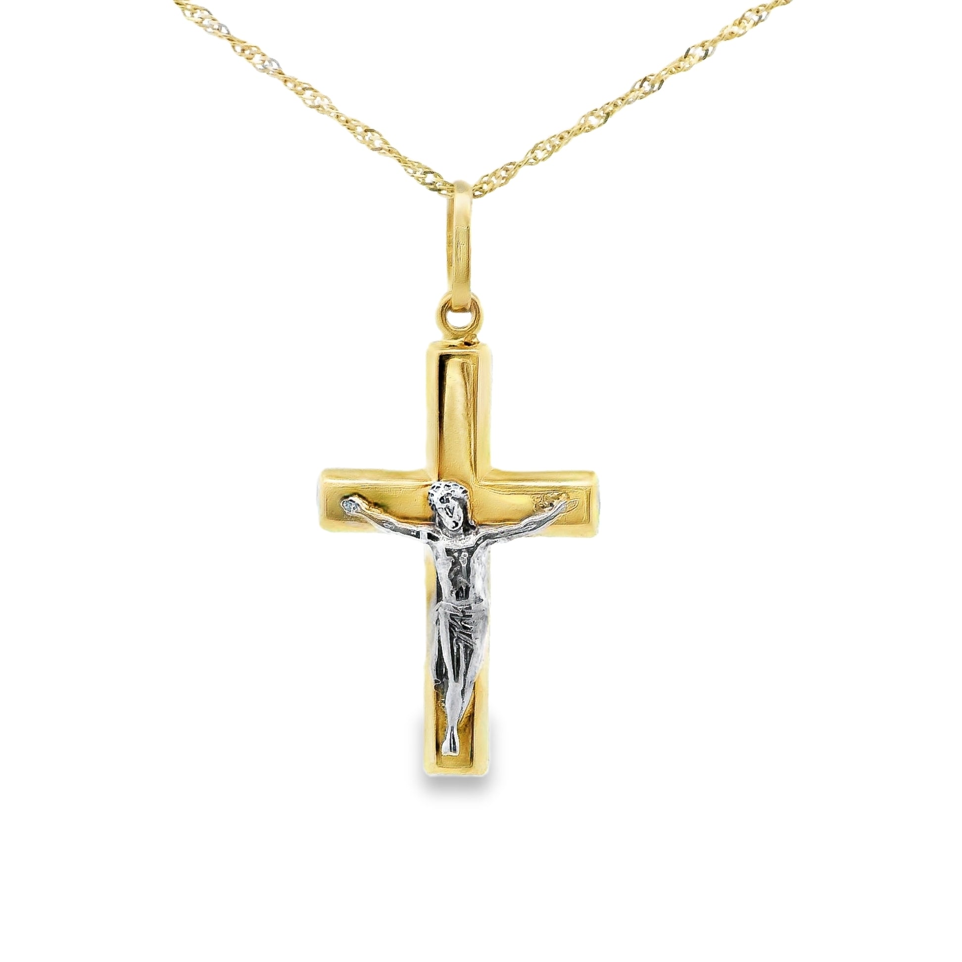 Pendentif Croix de Jésus bicolore en or 10 carats - Batran