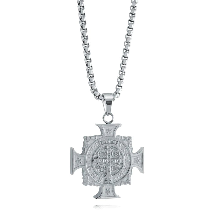 Collier Croix Saint Benoît Réversible Acier Inoxydable