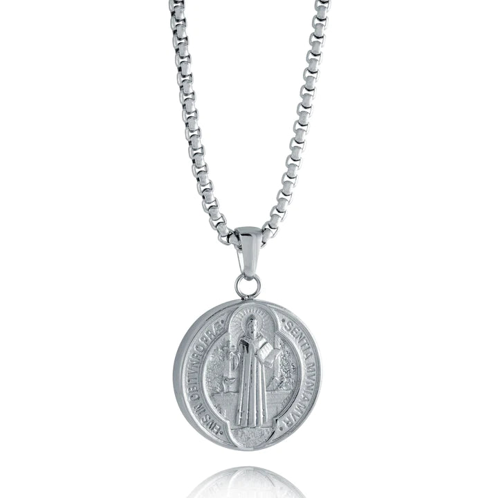 Pendentif Réversible Saint Benoît Acier Inoxydable
