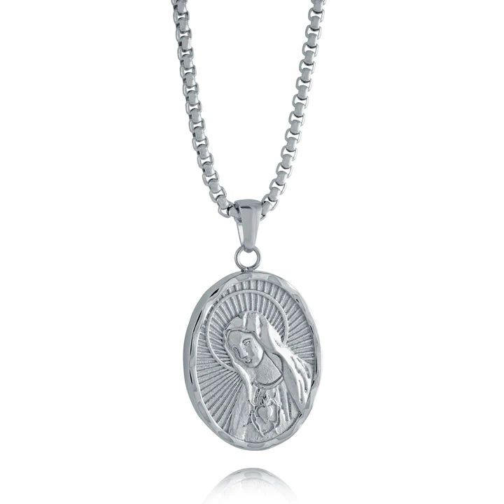 Collier pendentif réversible en acier inoxydable Cœur de Marie