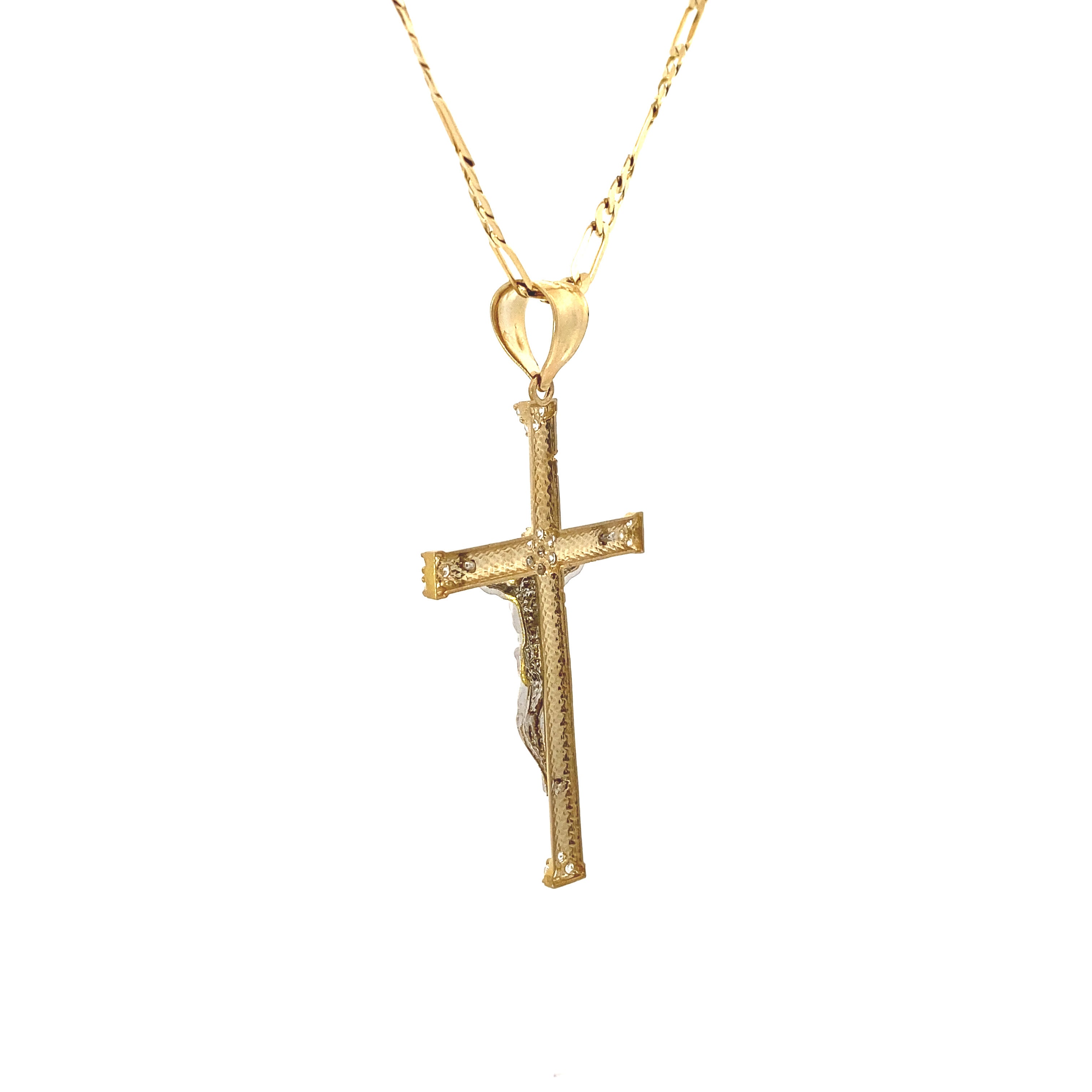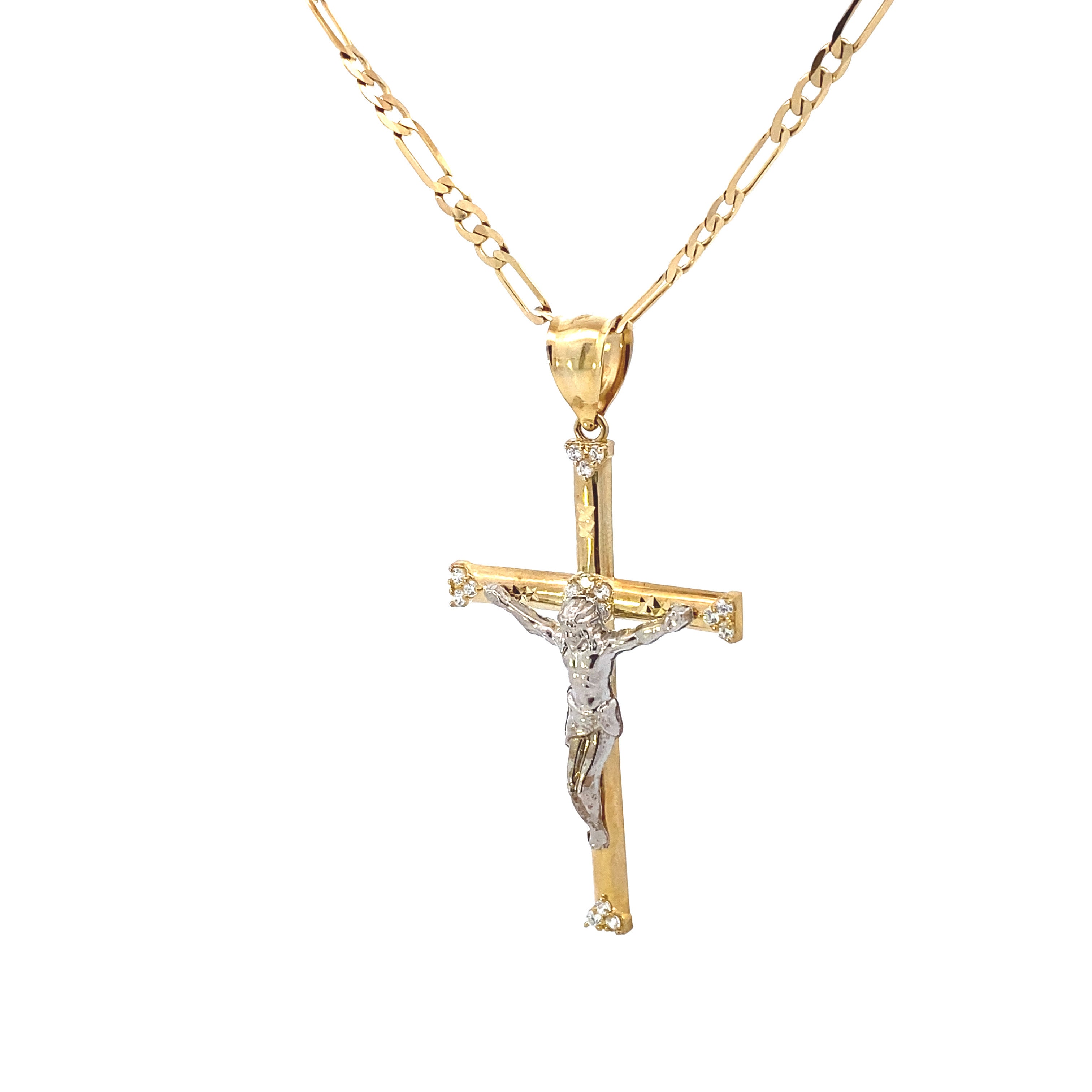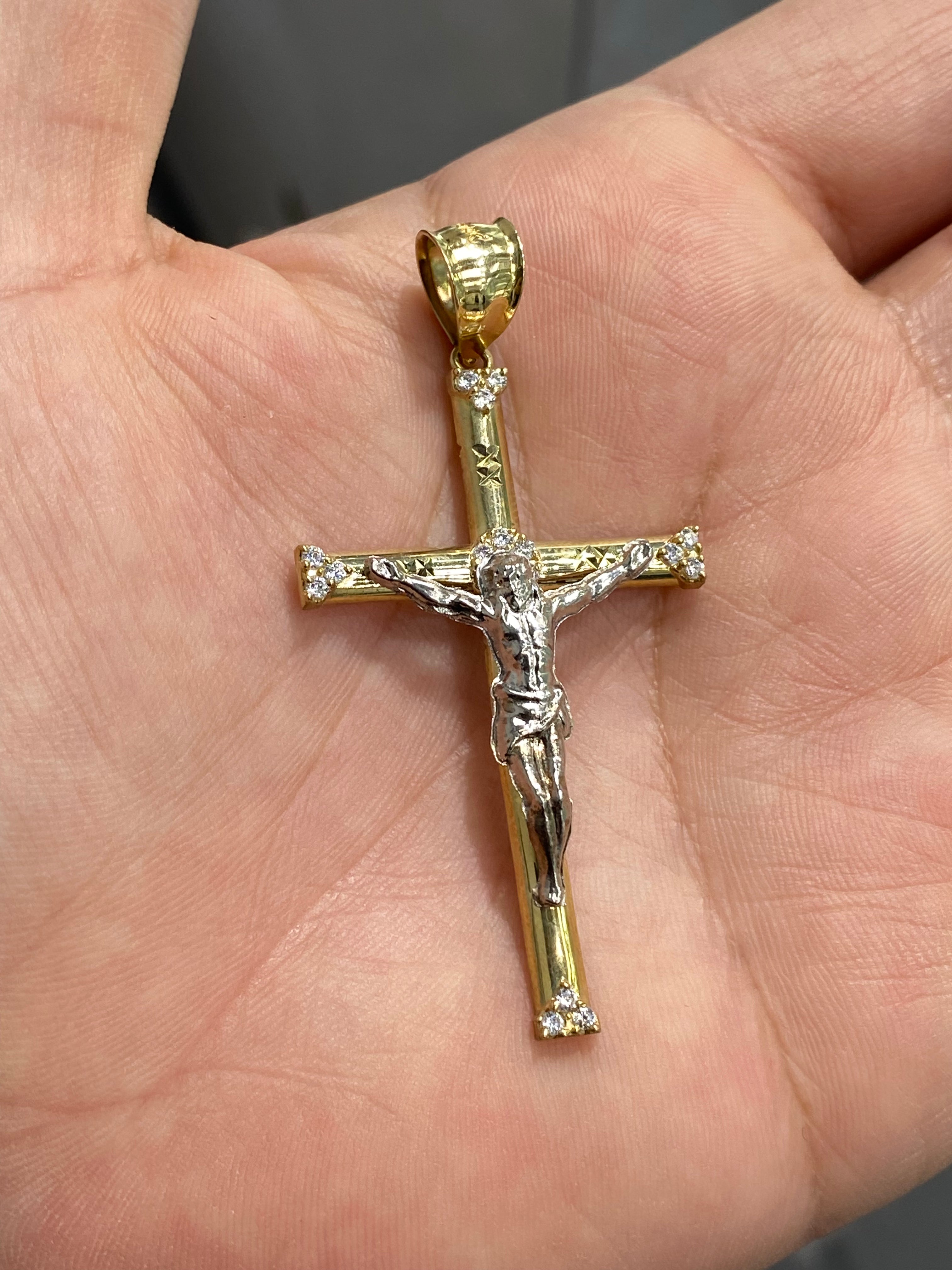 Pendentif Croix Jésus Blanc Brillant Or 10K