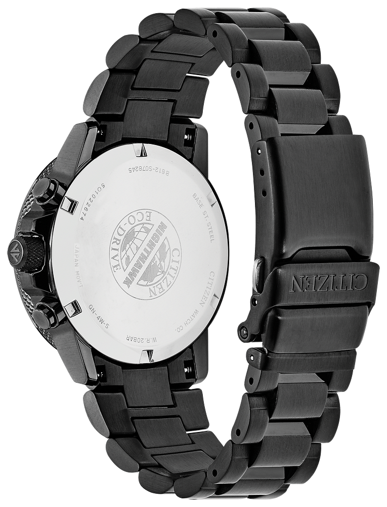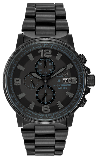 Atteignez de nouveaux sommets avec la Nighthawk, inspirée de l'aviation, qui incarne l'esthétique « blackout » actuelle. Ce garde-temps en acier inoxydable plaqué ion noir est doté d'un chronographe au 1/5 de seconde mesurant jusqu'à 60 minutes, d'une fonction 12/24 heures, d'un tachymètre, d'un fond vissé et d'une boucle déployante de sécurité avec bouton-poussoir. Étanche jusqu'à 200 mètres.
