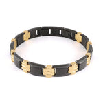 Stainless steel does not tarnish or rust and it's hypoallergenic.