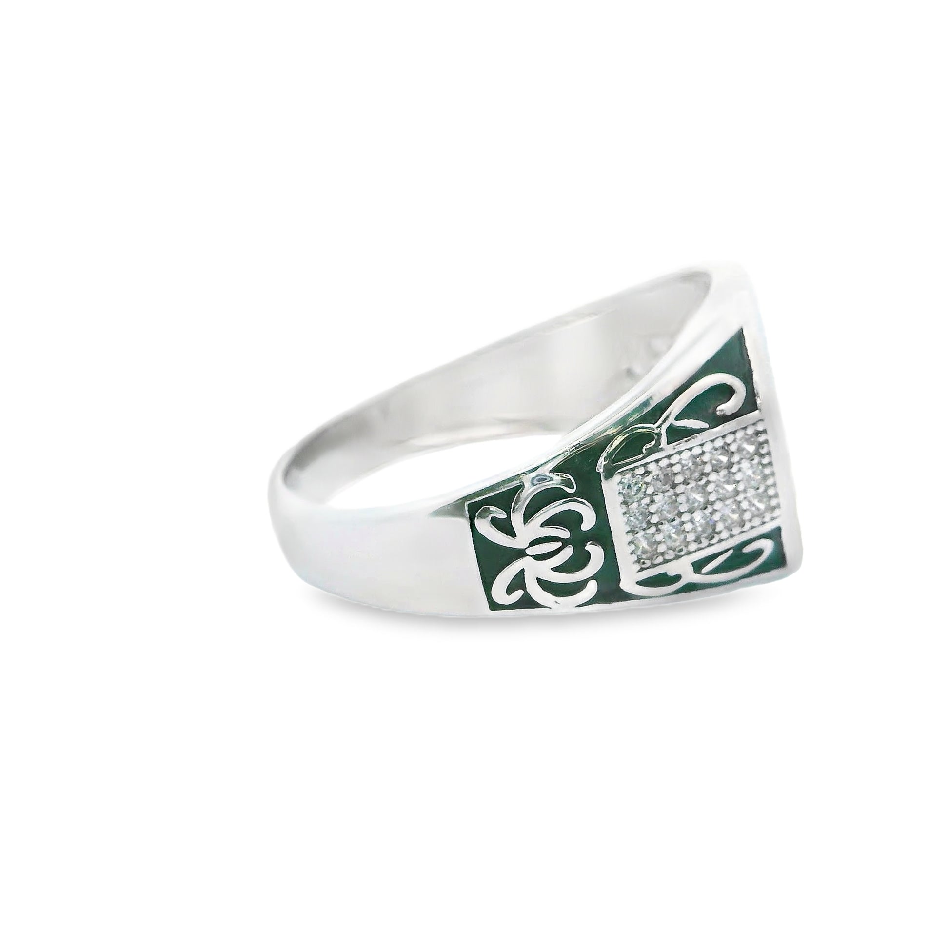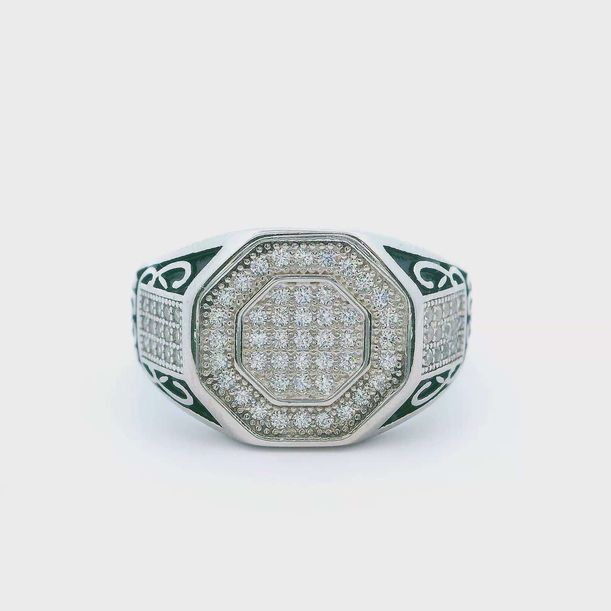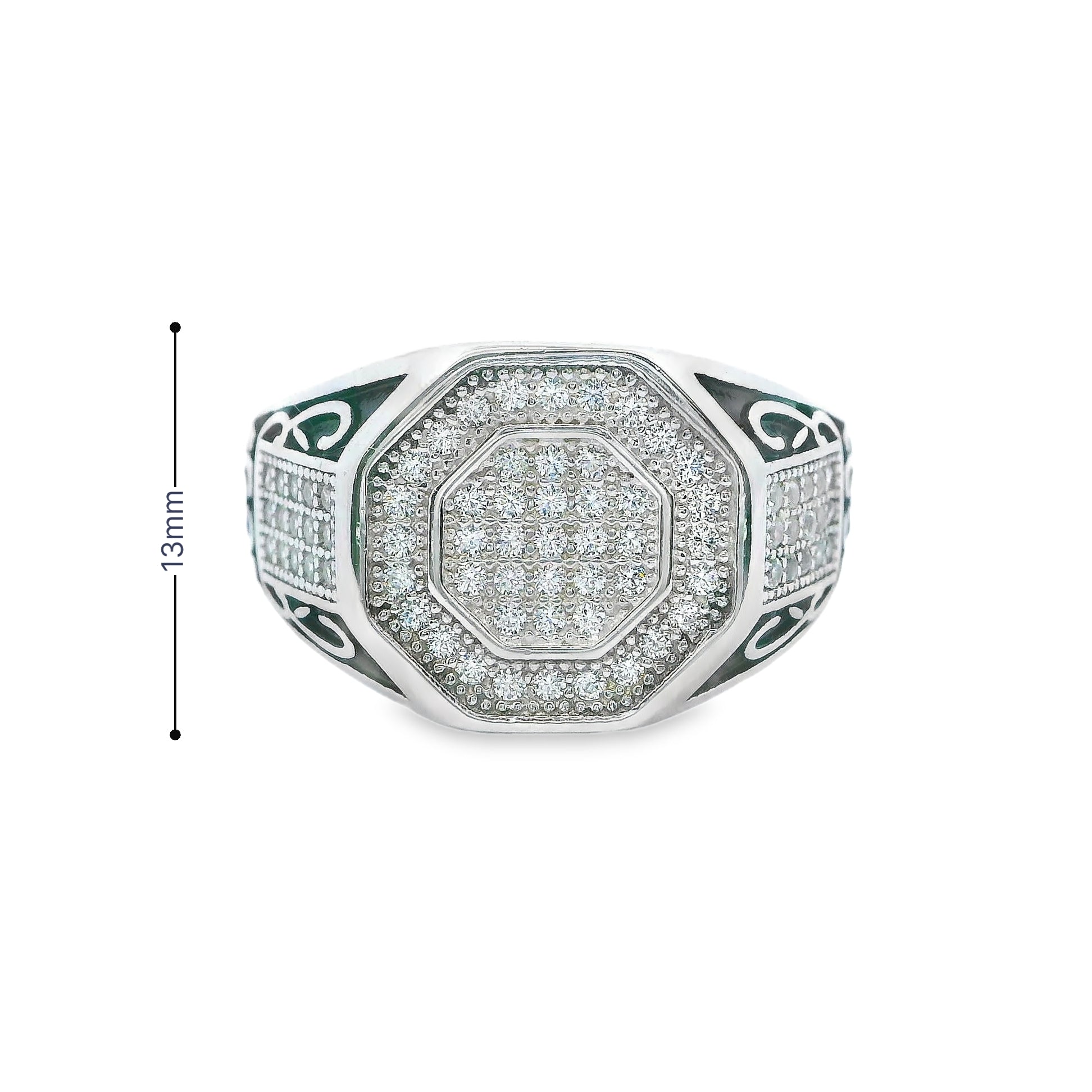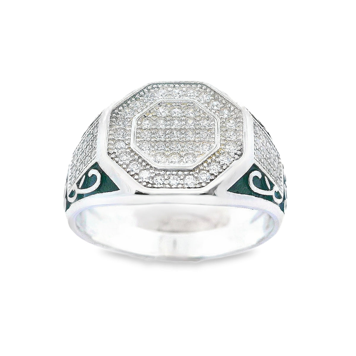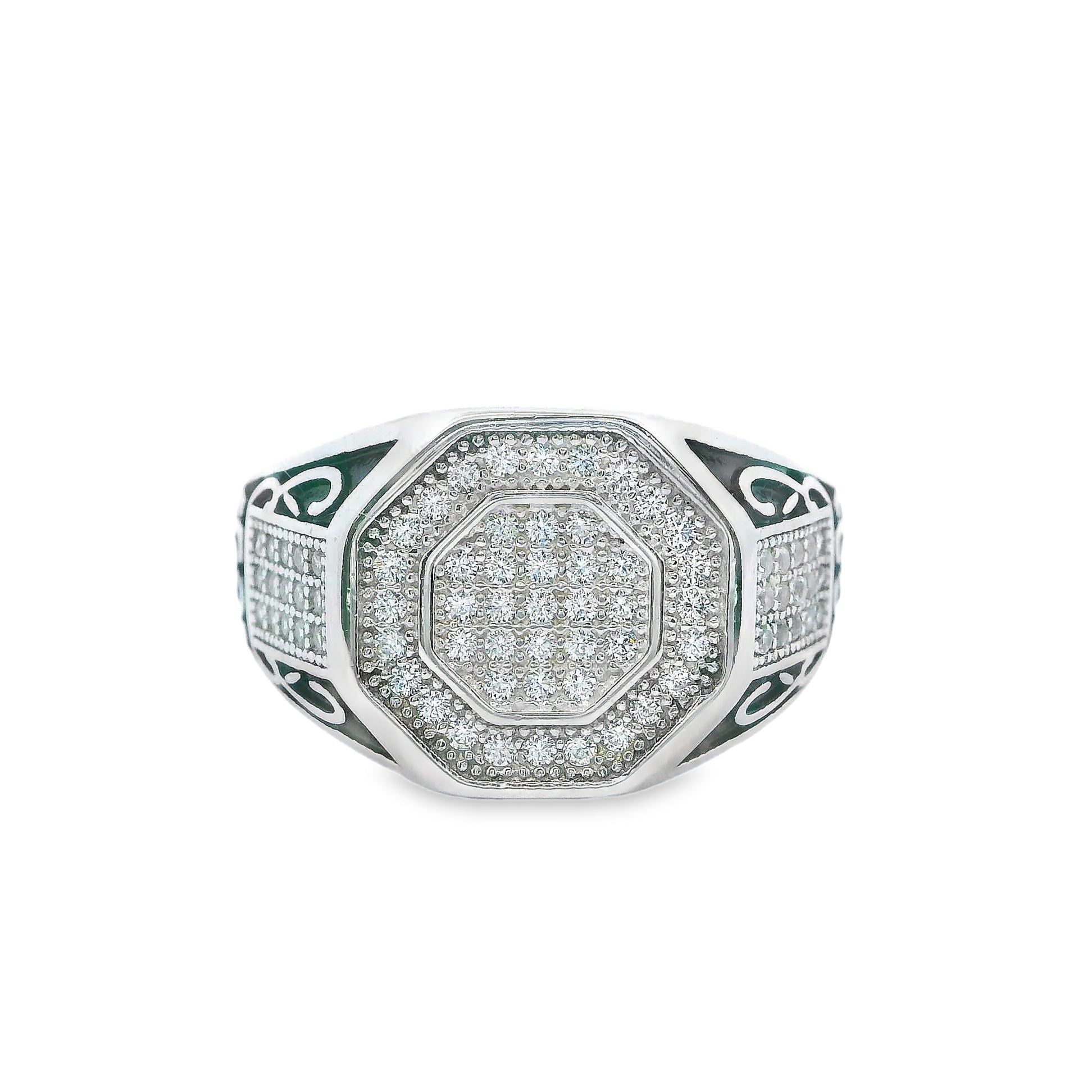 Crafted from high-quality 925 sterling silver and finished with a sleek rhodium plating, this men's ring combines durability with a refined shine. Its robust design ensures long-lasting wear, while the rhodium finish enhances resistance to tarnish and scratches. Perfect for those seeking a sophisticated accessory that maintains its brilliance through daily use.