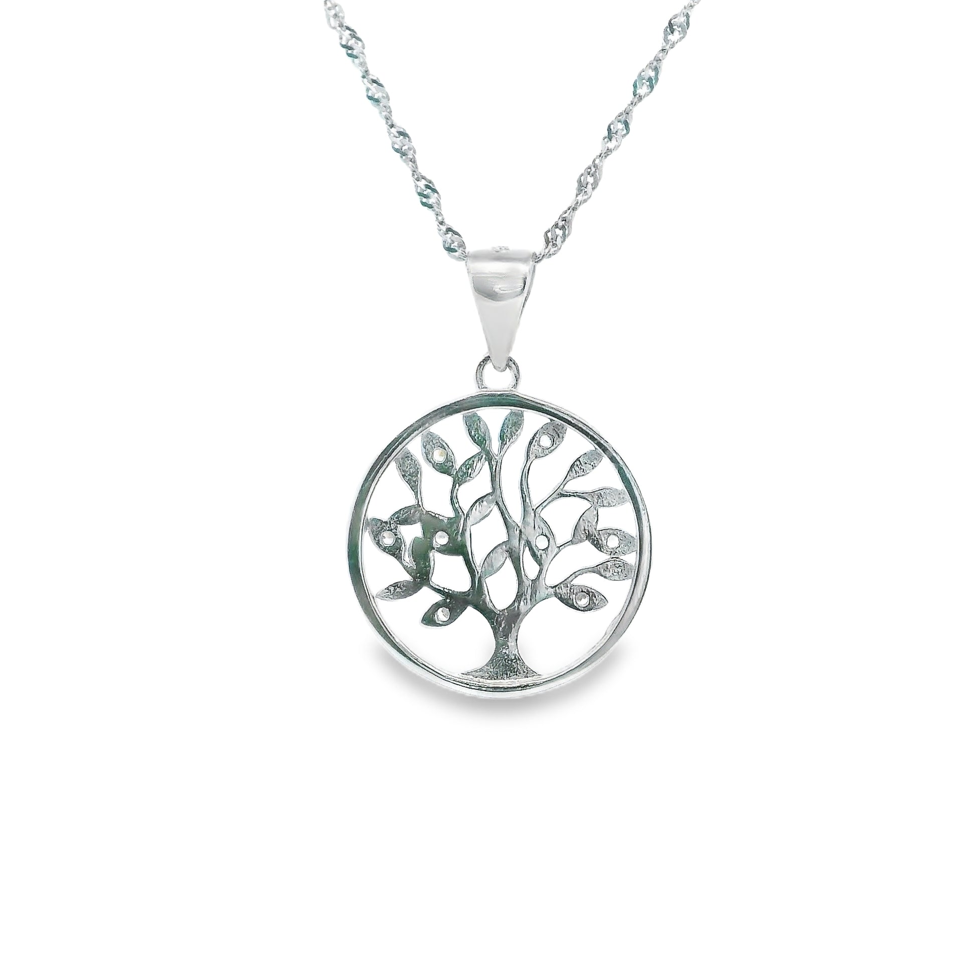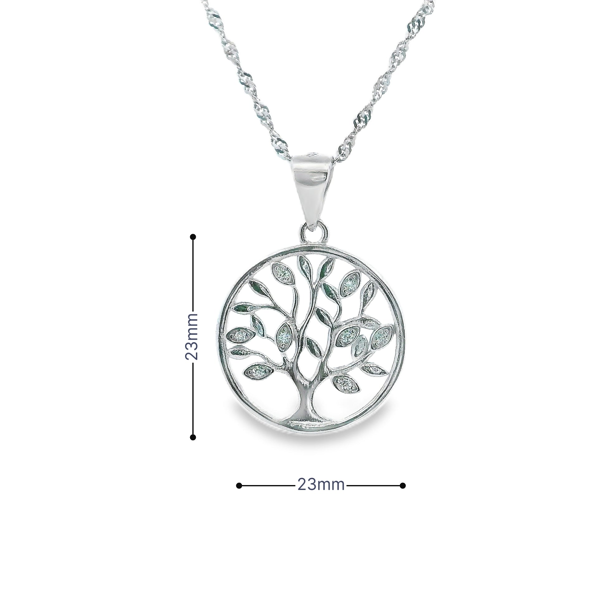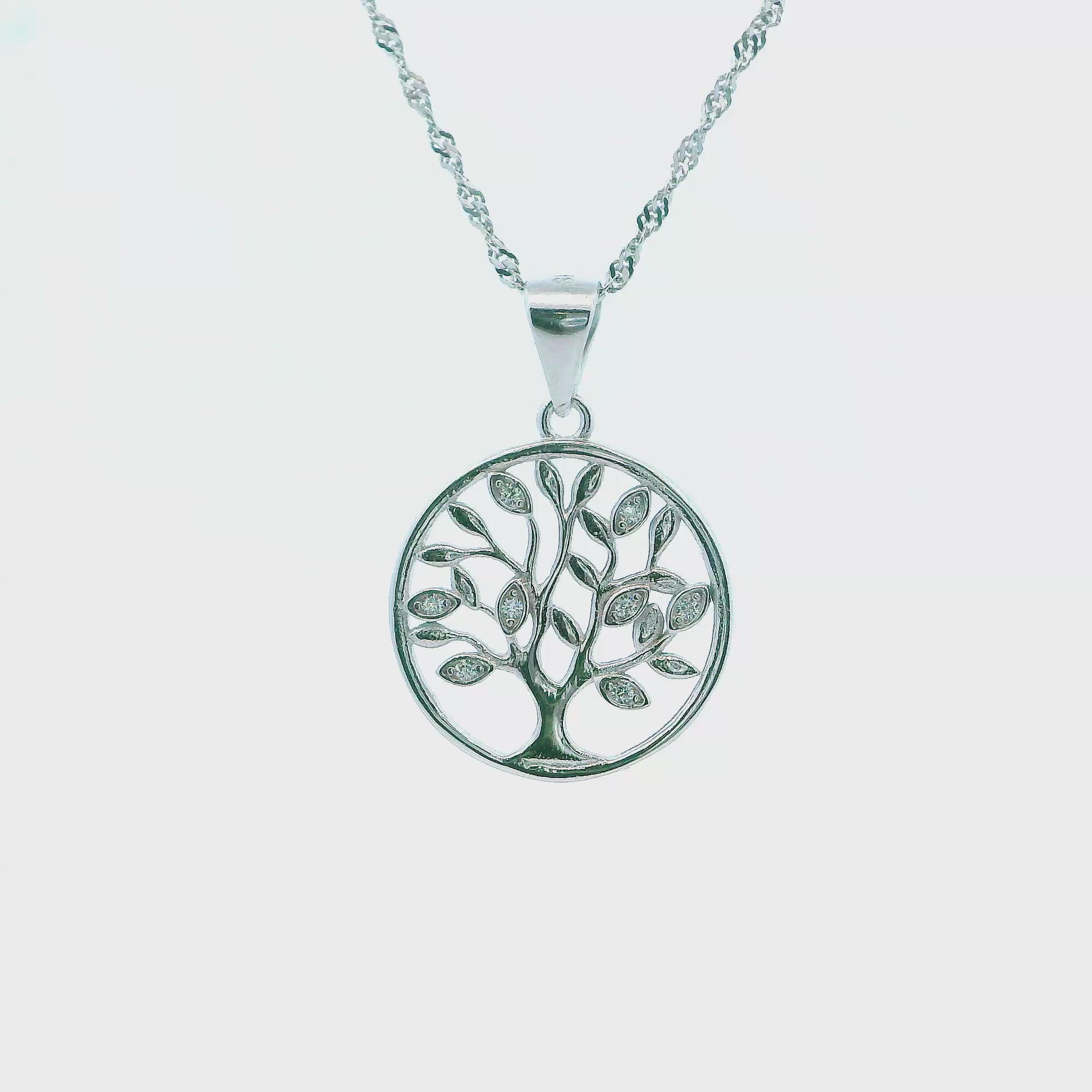 Crafted from sterling silver and finished with rhodium plating, this tree pendant combines timeless elegance with lasting durability. The rhodium coating enhances the metal's natural brilliance while providing superior resistance to tarnishing and scratching. The tree motif symbolizes growth, strength, and connection, making it a meaningful accessory for everyday wear or special occasions.