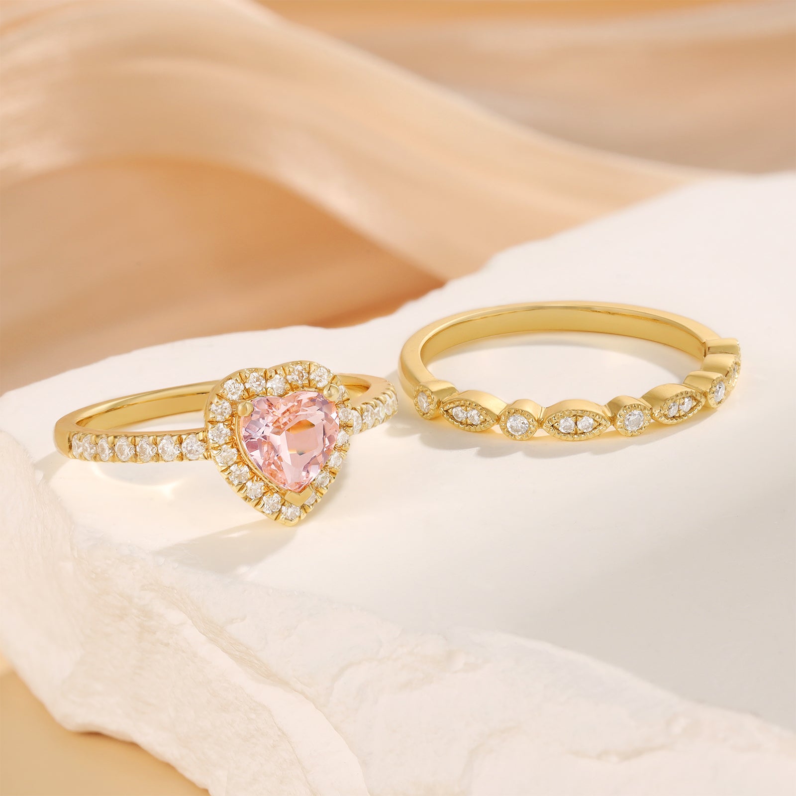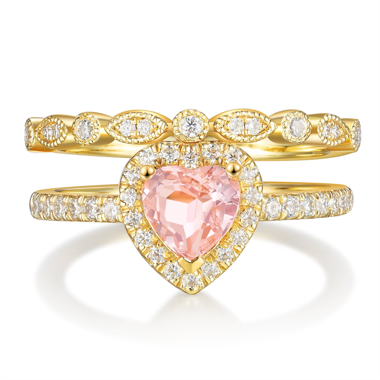 Ensemble de bagues en morganite naturelle en forme de cœur, en or