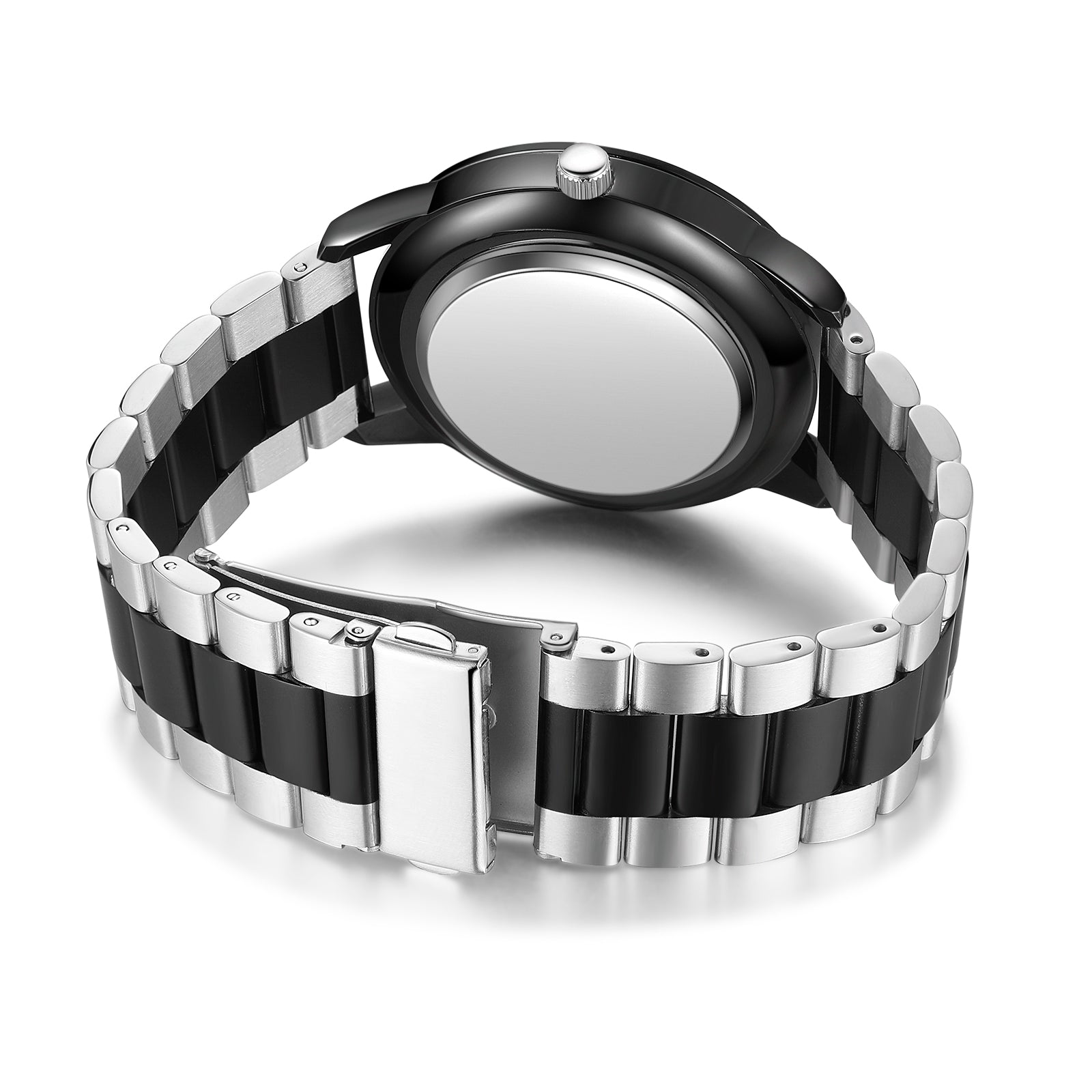 Montre photo personnalisée pour homme en acier inoxydable noir bicolore