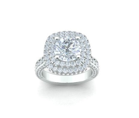 Bague de fiançailles diamant pavé double halo