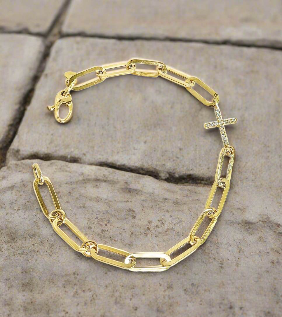 Bracelet Croix Trombone Diamant 18K