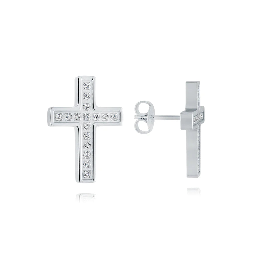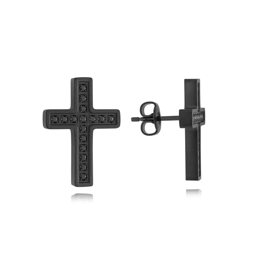 Boucles d'oreilles croix CZ en acier inoxydable plaqué ionique