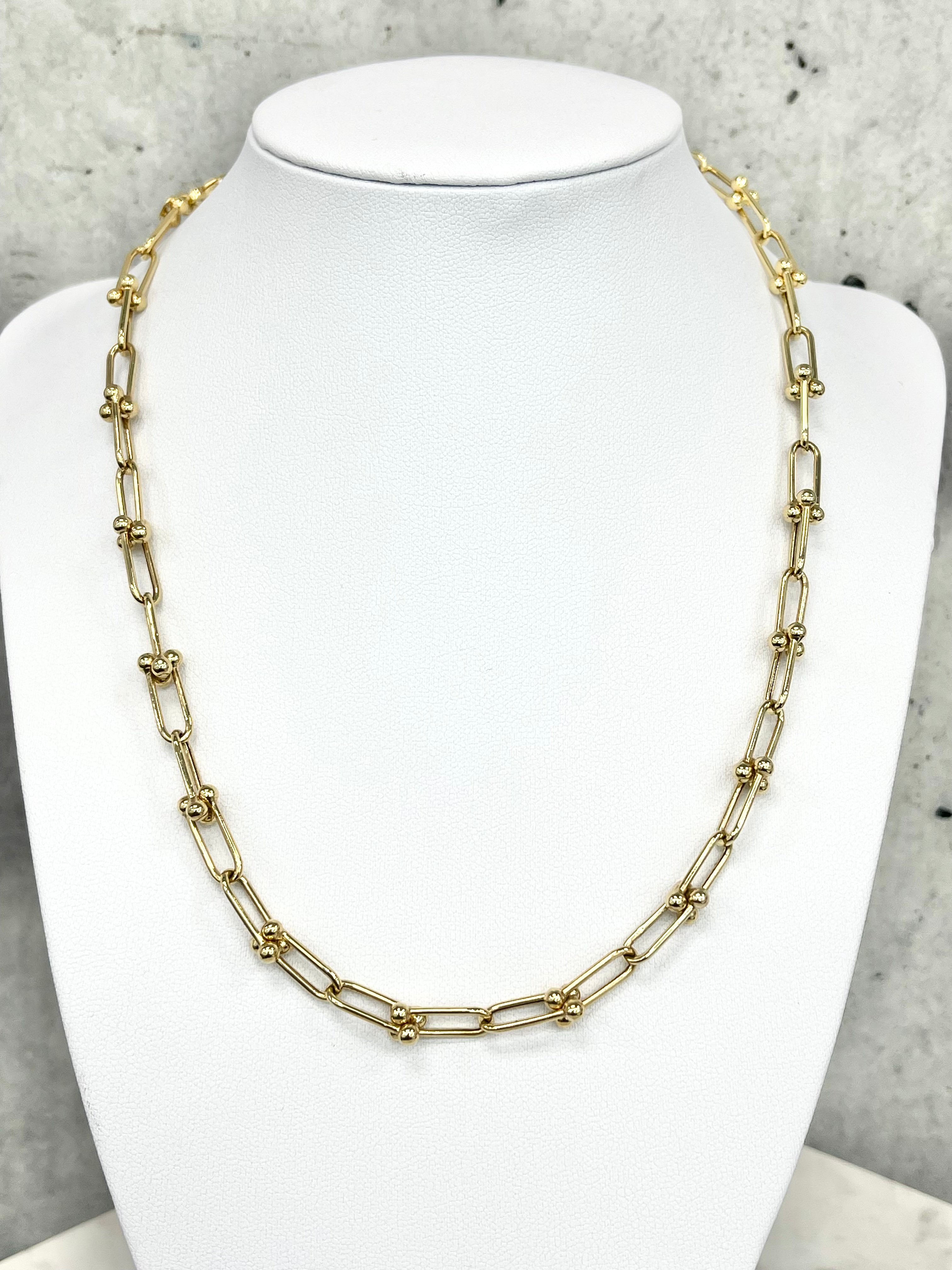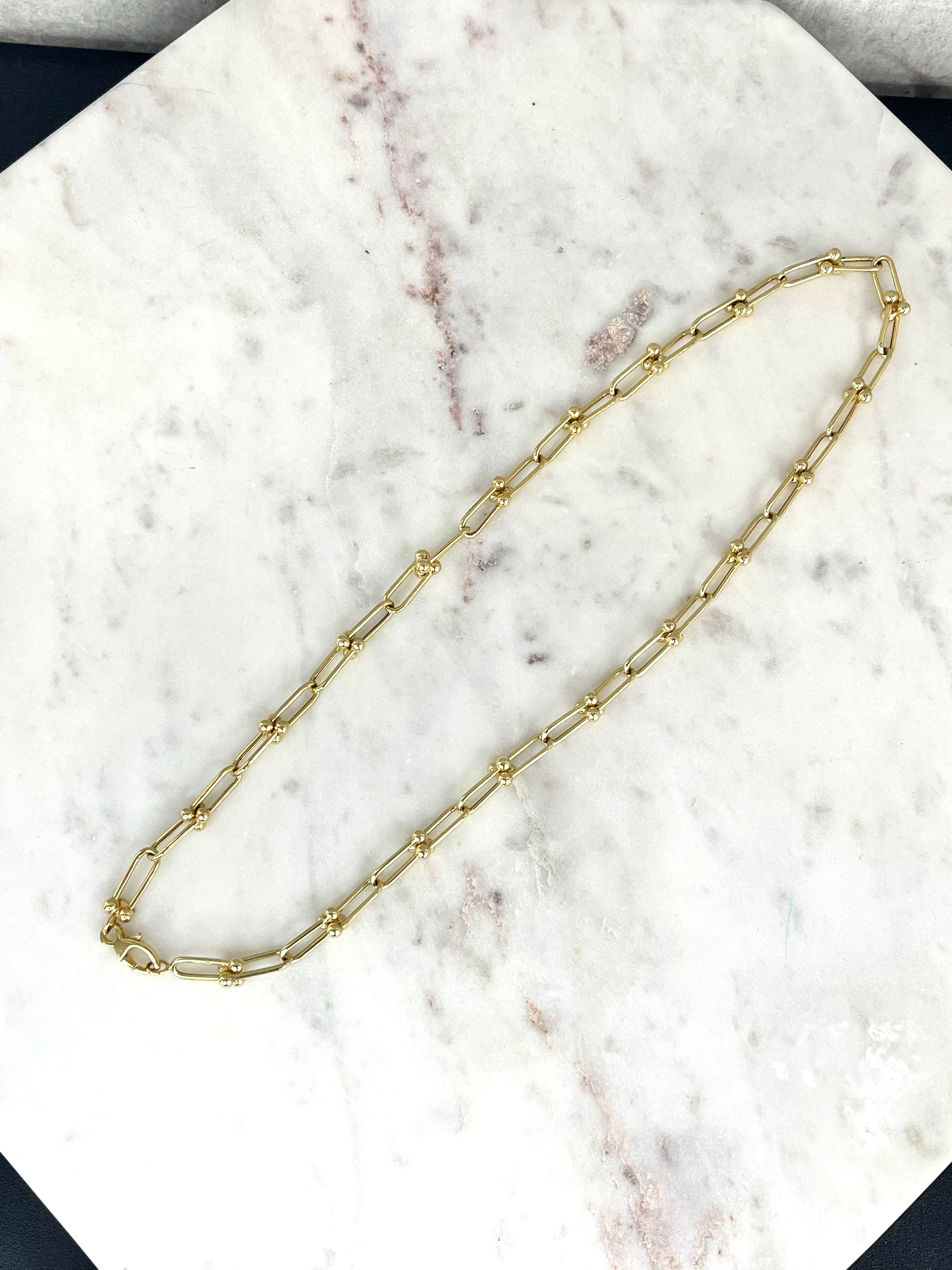 Collier à maillons en perles avec trombone en or jaune 10 carats
