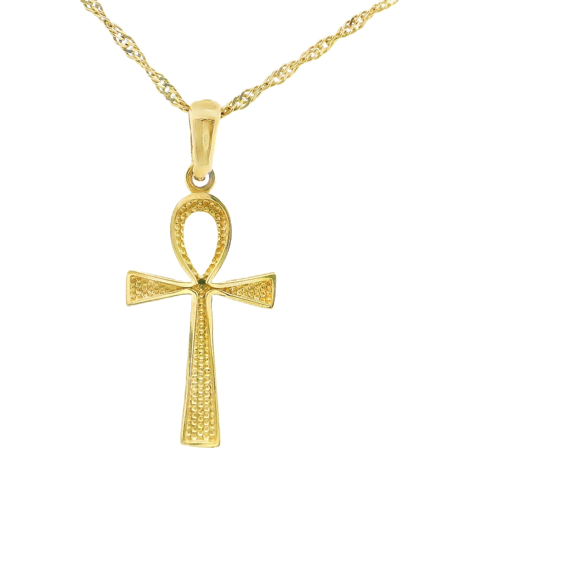 Fabriqué en or 10 carats de première qualité, ce pendentif Ankh symbolise la vie éternelle et la sagesse ancestrale. Le design Usor, aux détails soignés et aux proportions harmonieuses, crée une pièce sophistiquée, à la fois bijou significatif et symbole culturel. Idéal pour les collectionneurs et les passionnés de symbolisme égyptien.
