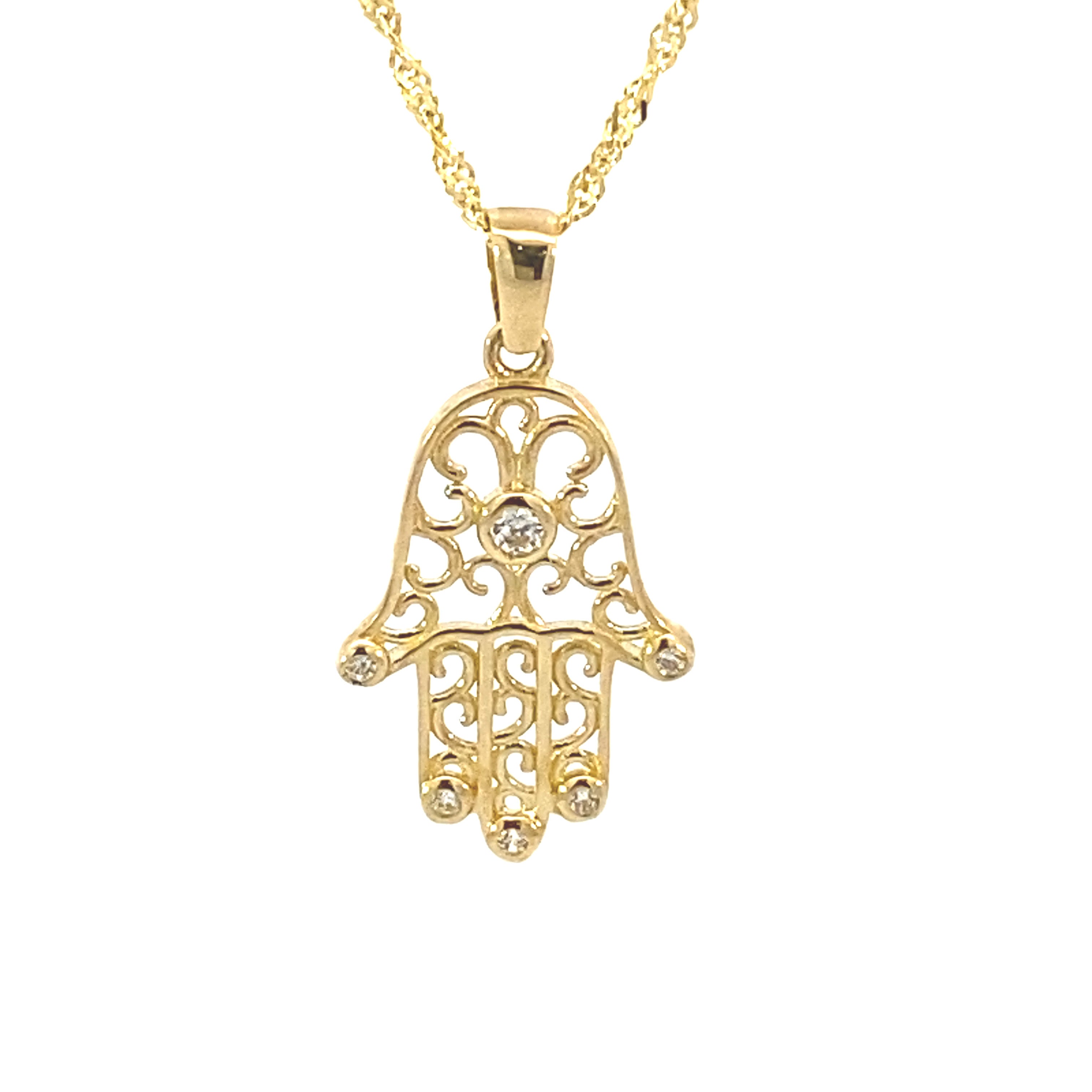 Véritable collier en or jaune 10K, les pierres sont des zircons cubiques.