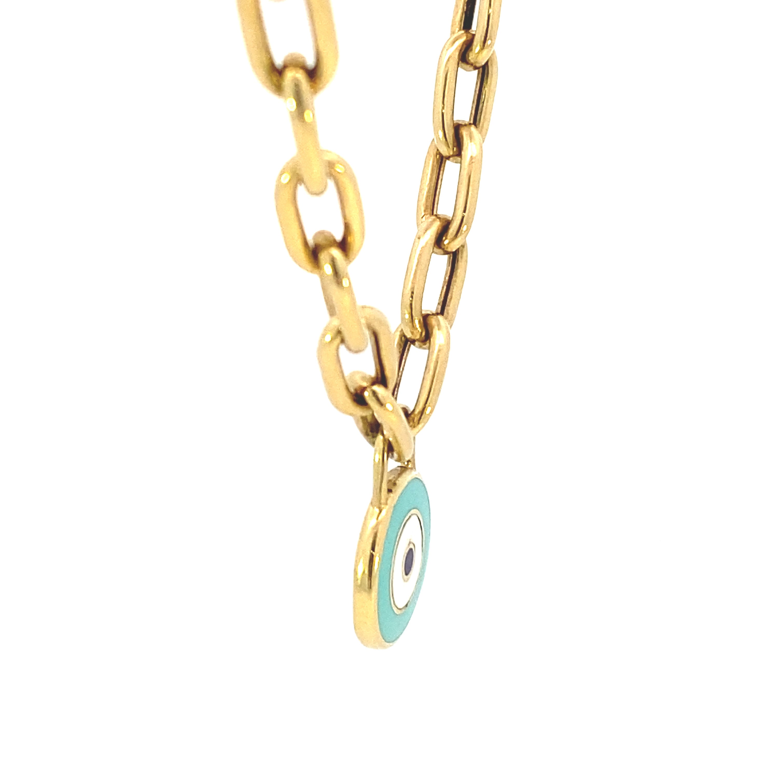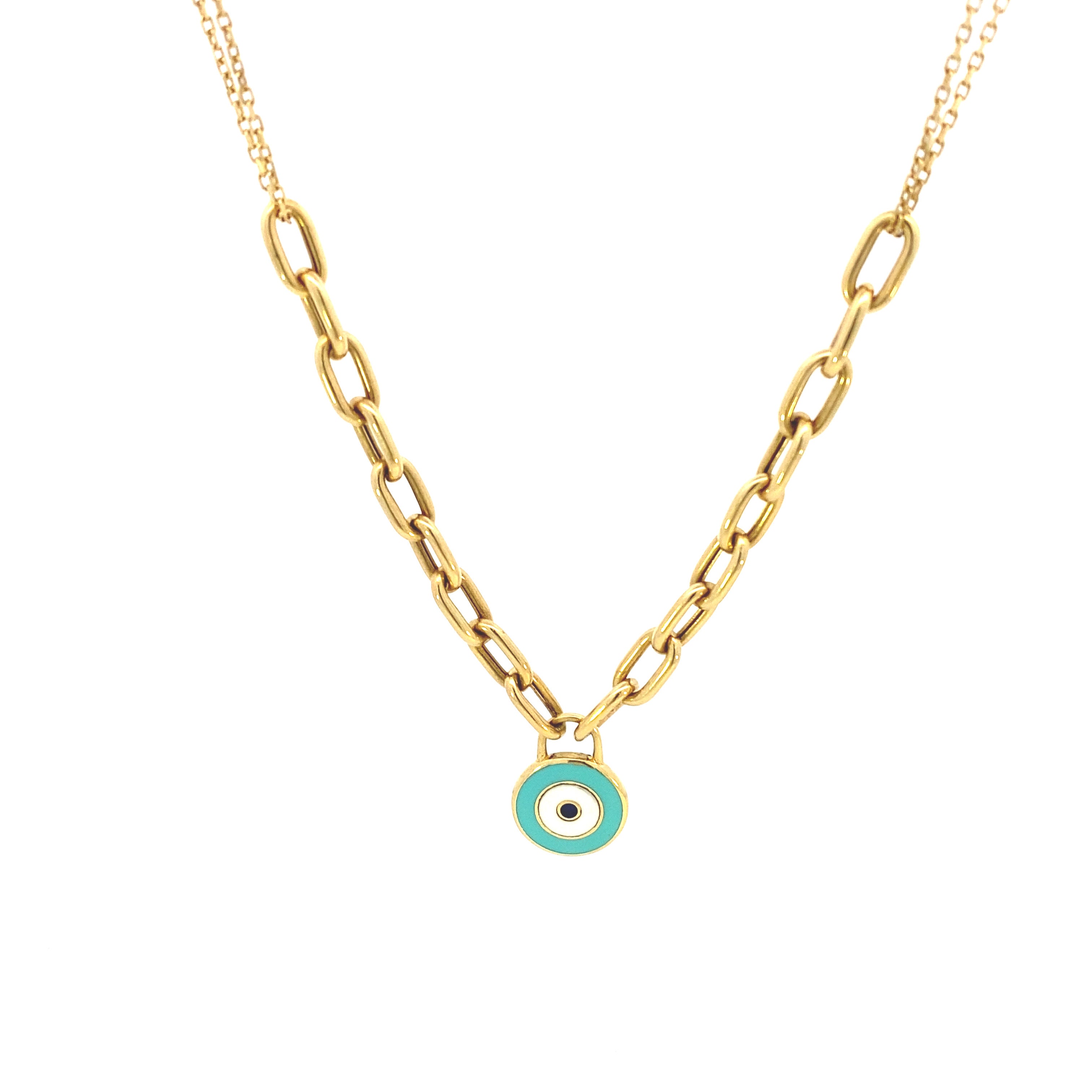 Collier mauvais œil double chaîne en or jaune véritable 18 carats.