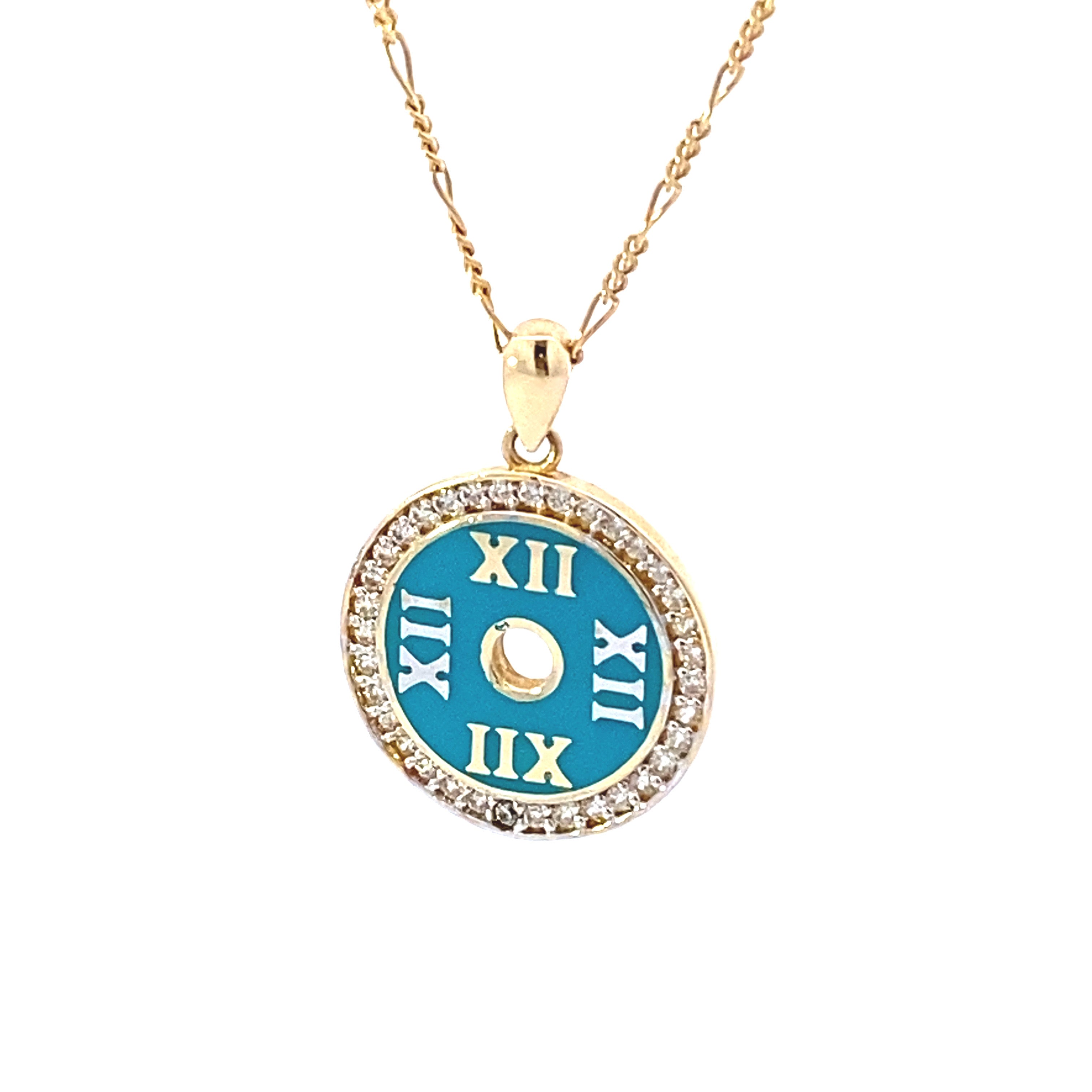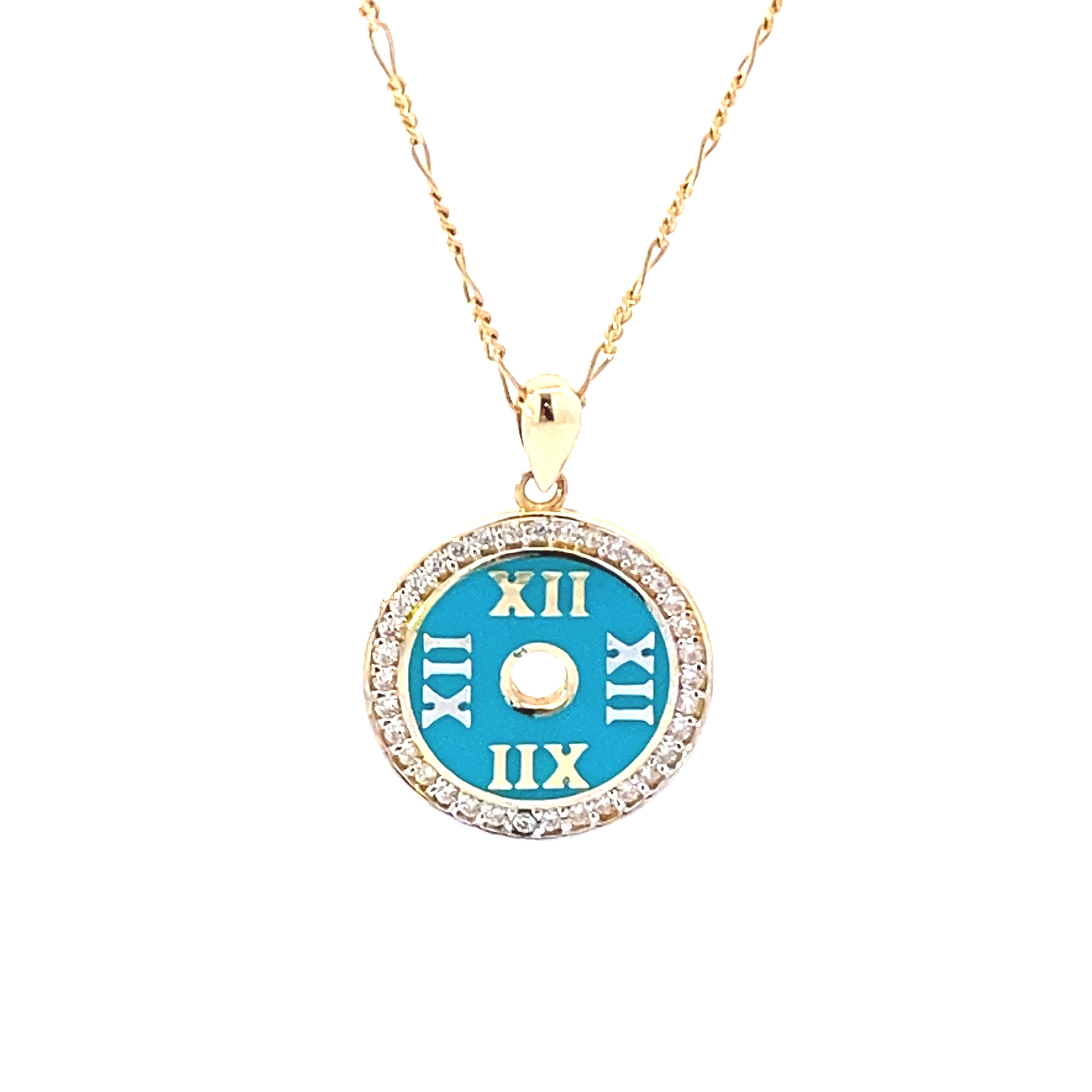 Véritable collier en or jaune 14 carats, les pierres sont des zircons cubiques.