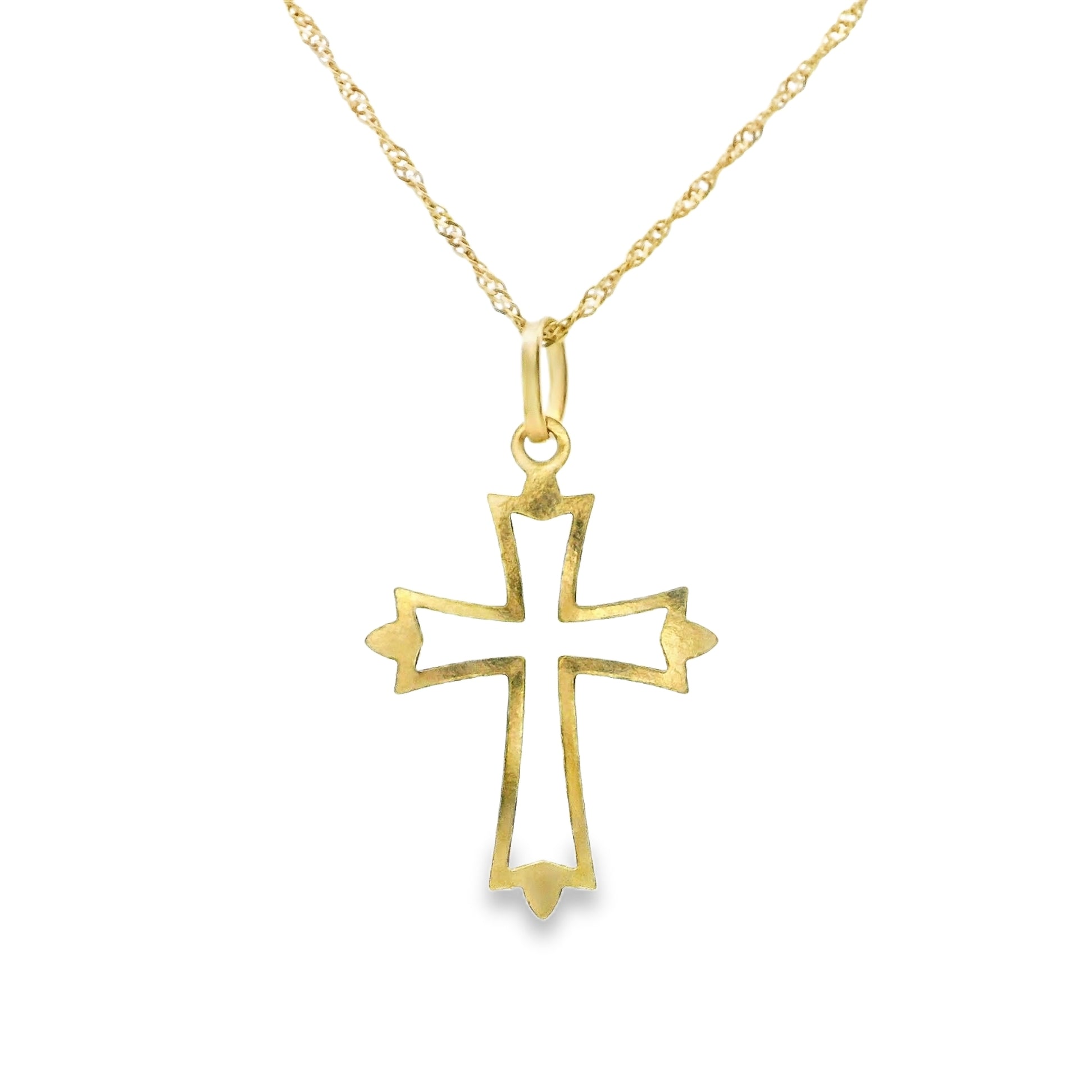 Cet élégant pendentif croix est fabriqué en or 10 carats, ce qui en fait une pièce intemporelle et durable. Son design classique et ses matériaux de haute qualité en font un symbole parfait de foi et de dévotion. Avec son allure simple et sophistiquée, ce pendentif convient à toutes les occasions et constitue un cadeau attentionné et plein de sens.