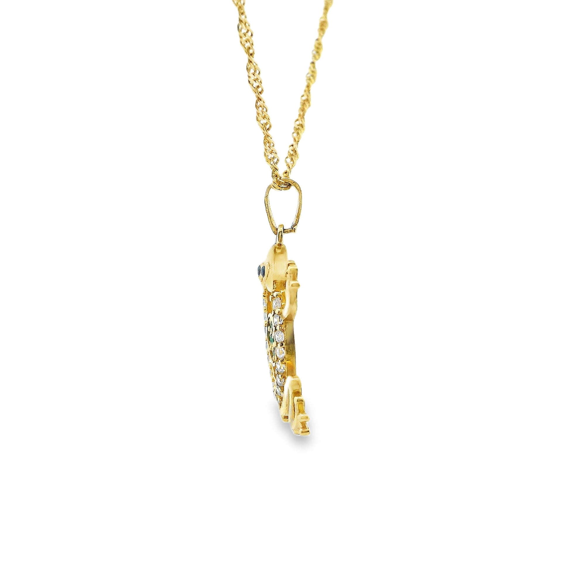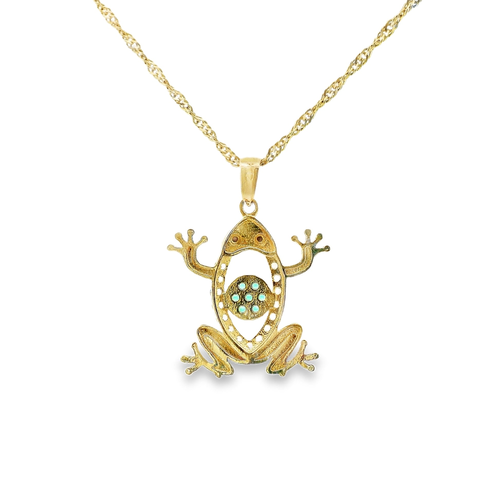 Ce pendentif en or 10 carats arbore un charmant et délicat motif de grenouille. Fabriqué avec précision et qualité, il allie à la perfection élégance et fantaisie. Fabriqué avec des matériaux de haute qualité, ce pendentif est une pièce intemporelle qui ajoute une touche de fantaisie à toutes vos tenues.