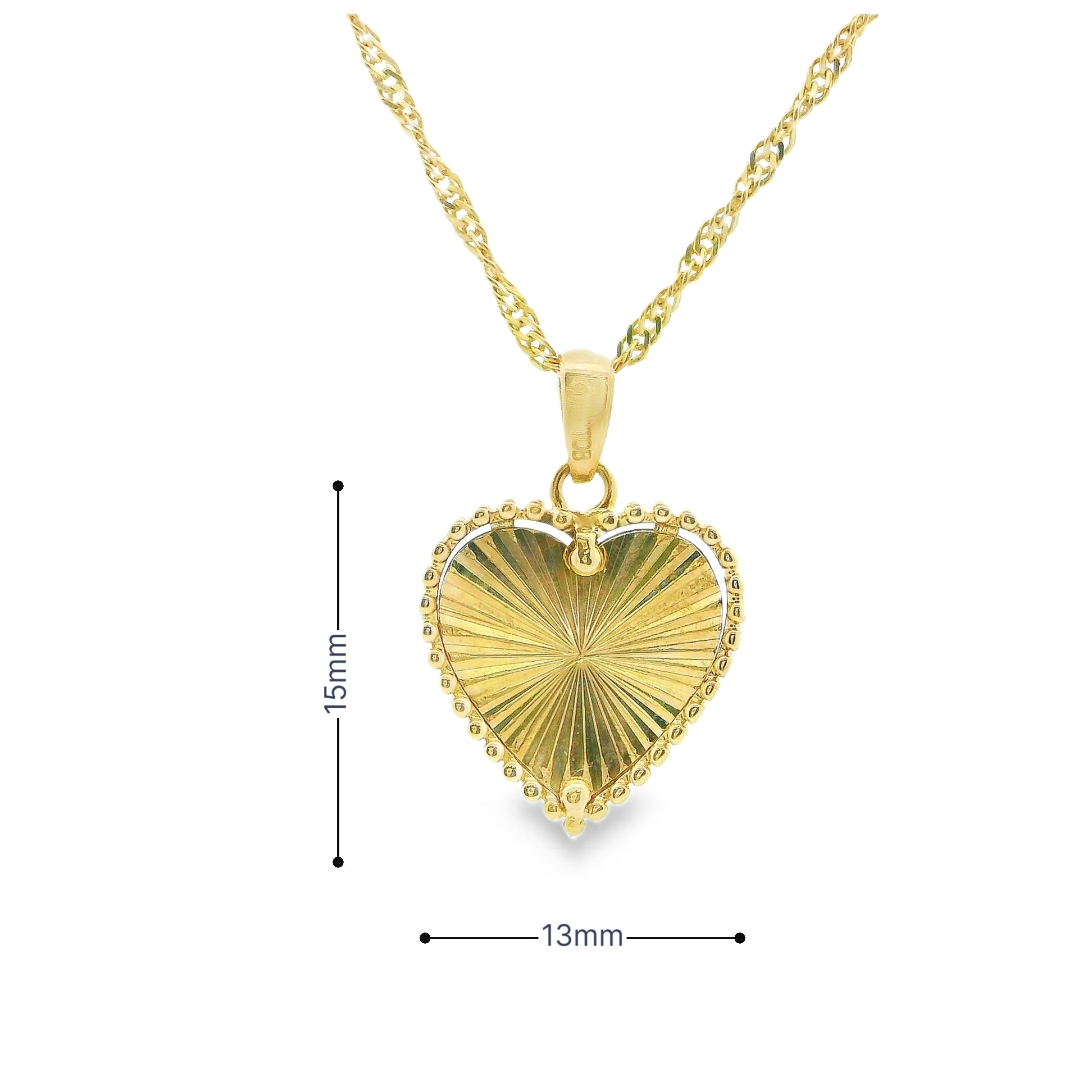 This 10K Gold Heart Pendant showcases a refined design with a subtle sulfide finish, offering a warm and elegant glow. Its durable gold composition ensures lasting beauty, making it an ideal accessory for daily wear or special occasions. Expertly crafted, this pendant combines classic symbolism with quality materials for timeless appeal.