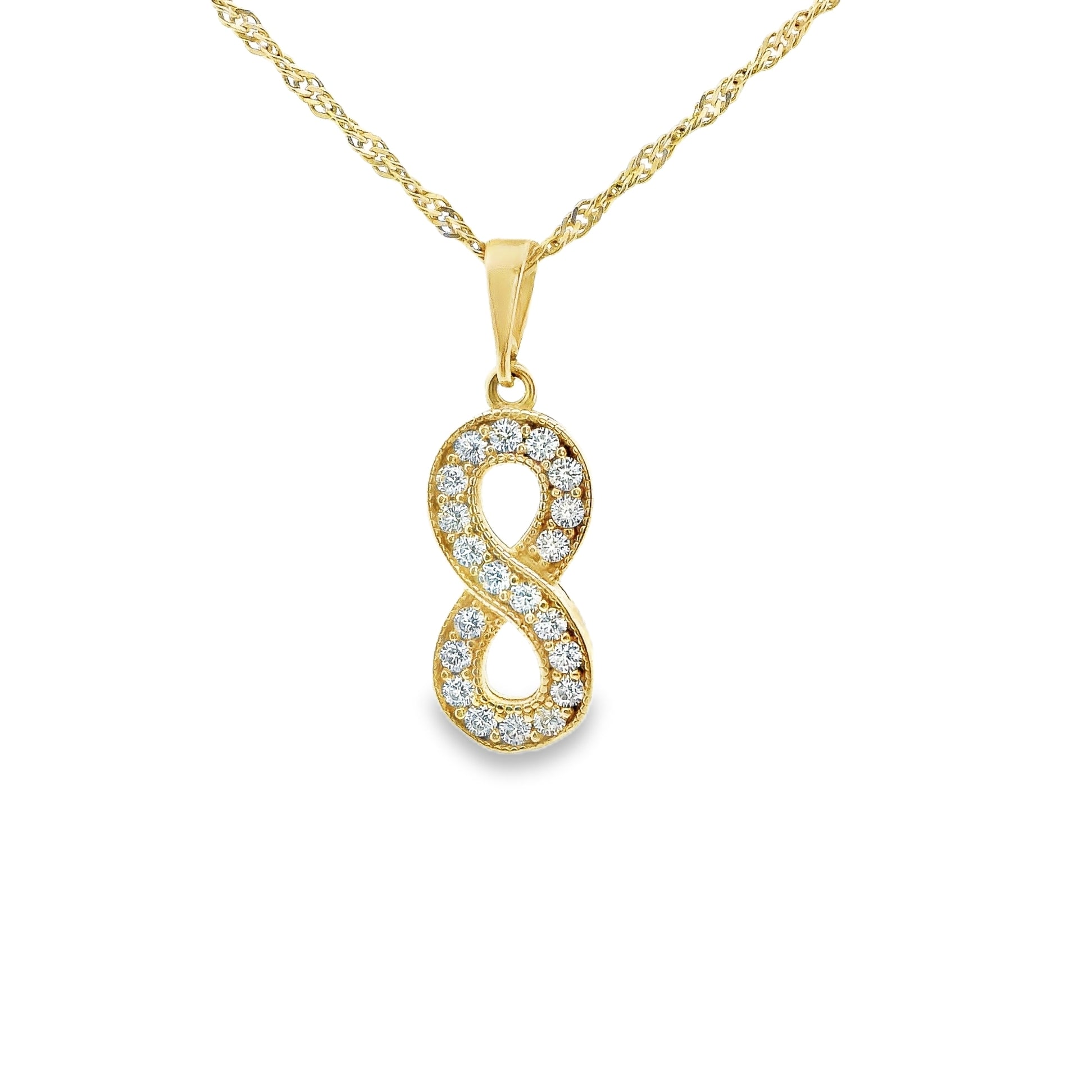 Adoptez un style intemporel avec notre pendentif Infini en or 10 carats. Fabriqué en or 10 carats de haute qualité, ce pendentif arbore un symbole infini intemporel. Idéal au quotidien comme pour les grandes occasions, il apporte une touche de sophistication à toutes vos tenues. Affirmez votre style avec ce bijou polyvalent et élégant.