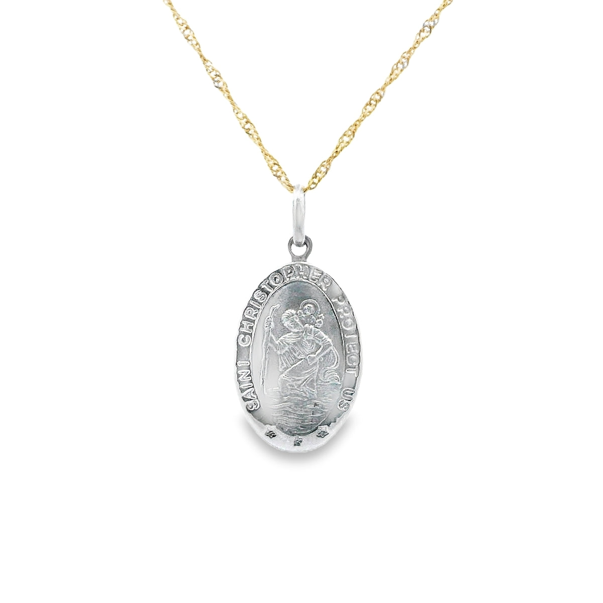 Pendentif religieux Saint Christophe en or blanc 10 carats