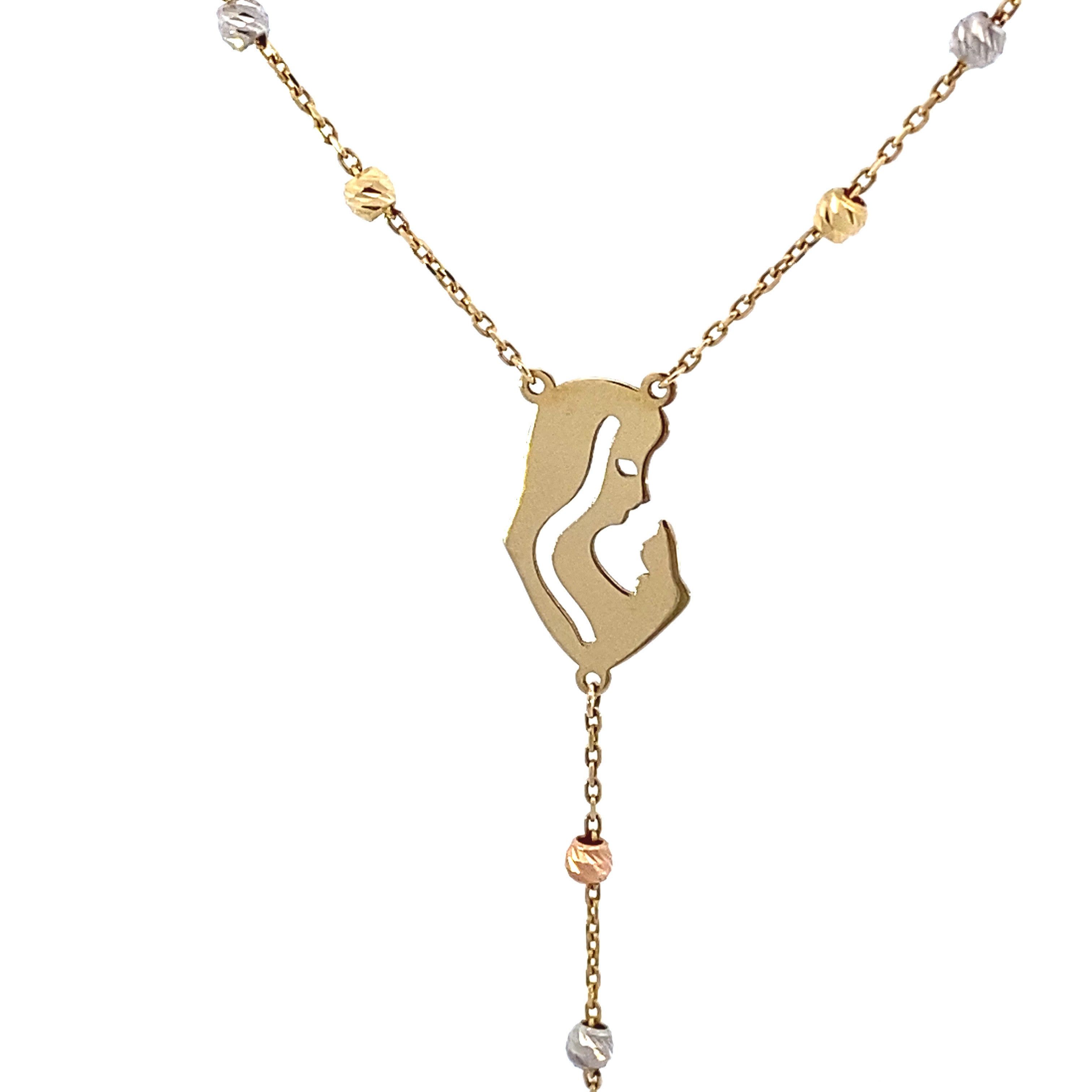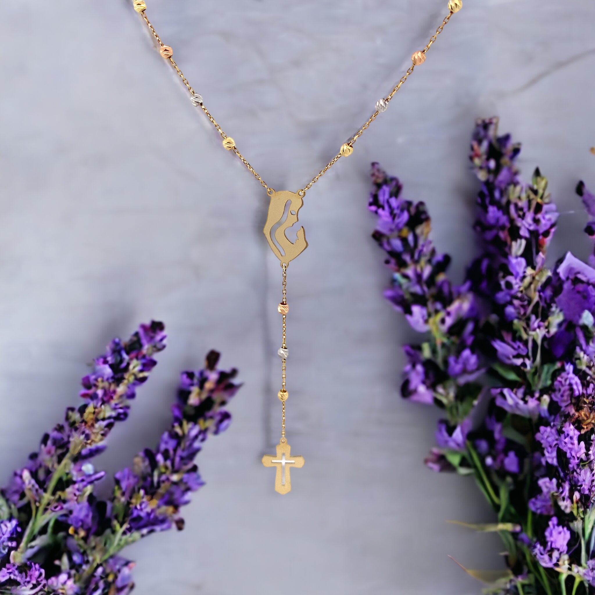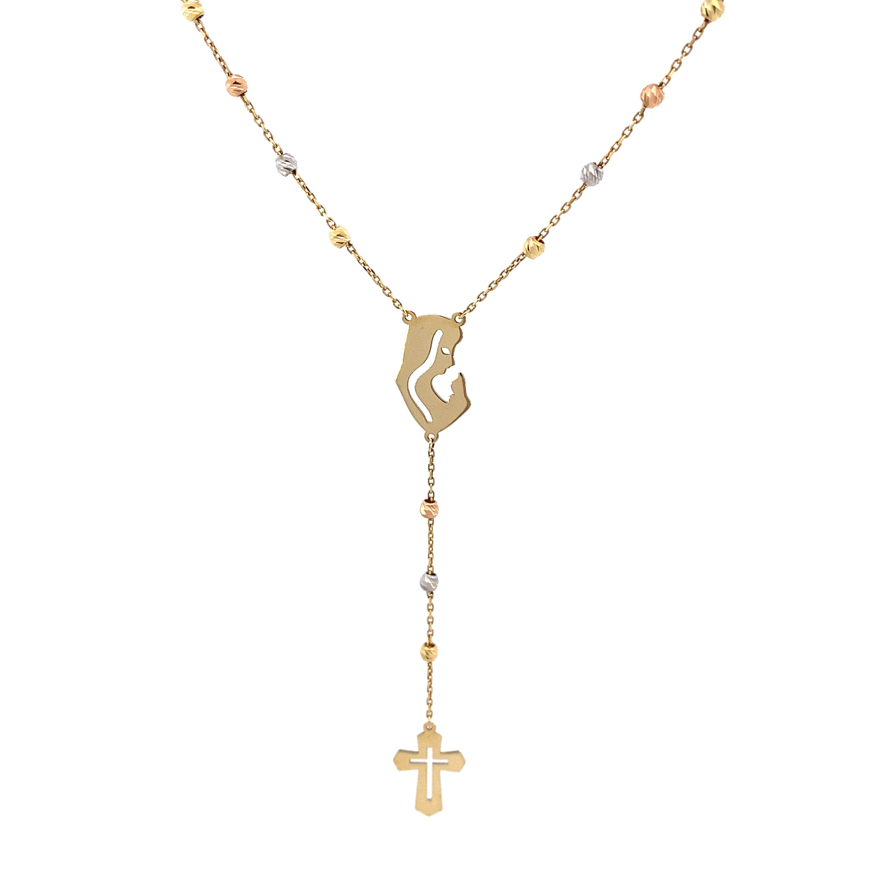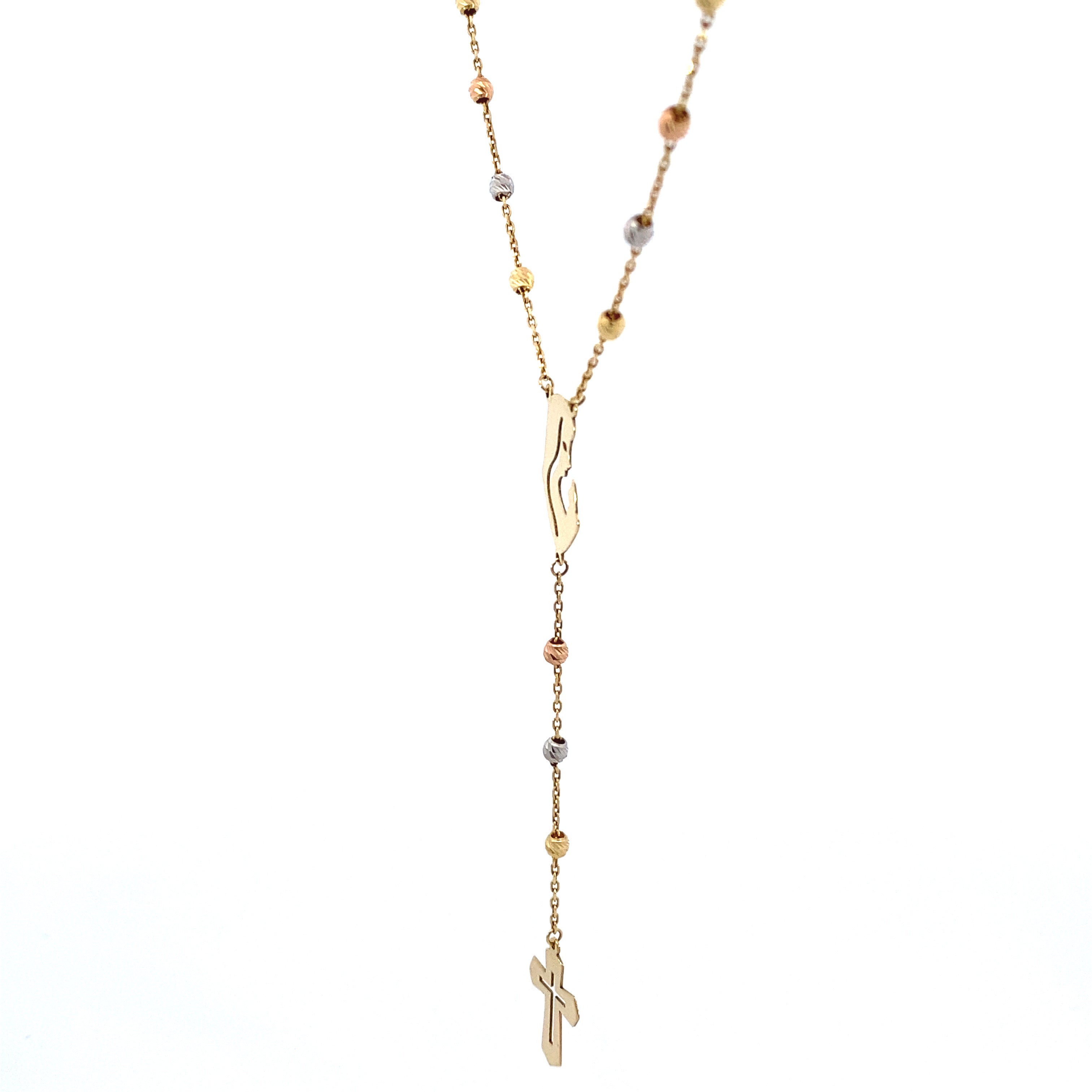 Chapelet en or jaune, rose et blanc véritable 18 carats.