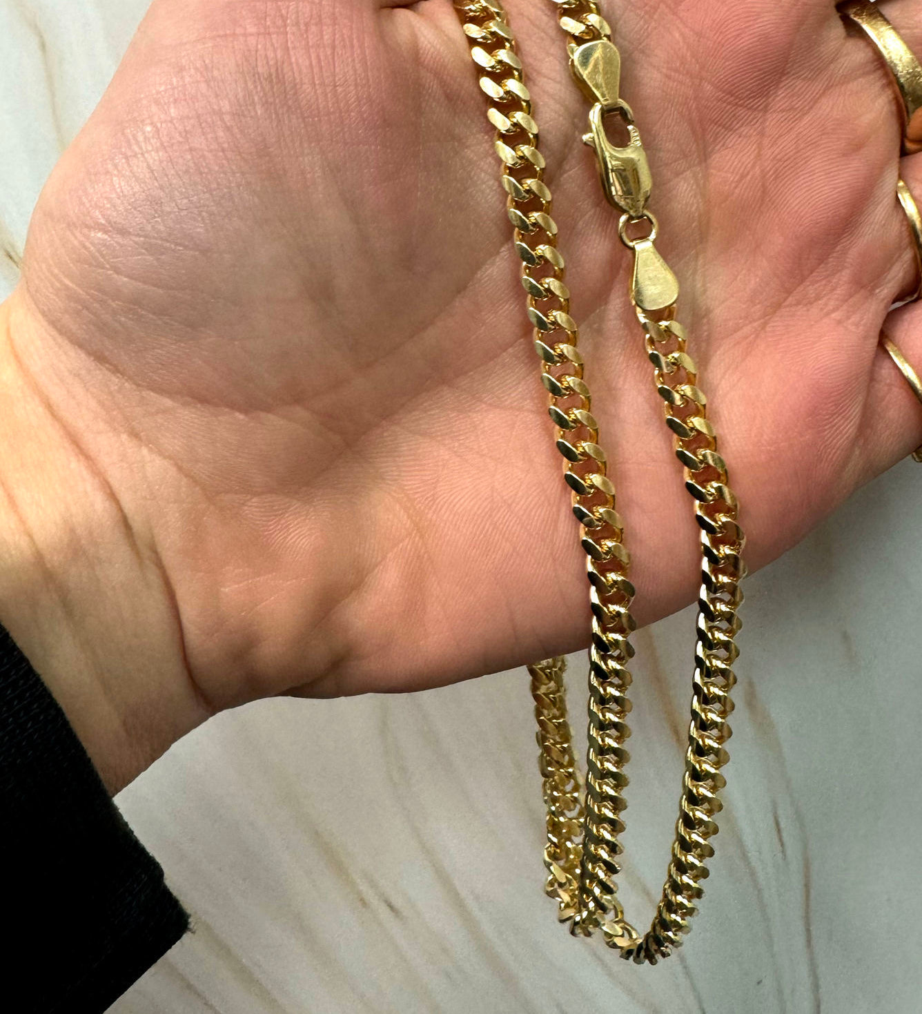 Chaîne cubaine en or massif 10 carats de 4,20 mm