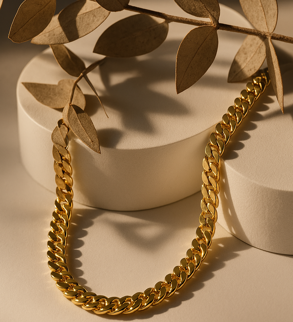 Chaîne cubaine en or massif 10 carats de 3,4 mm