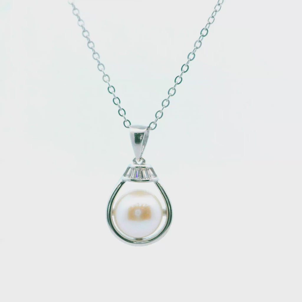 Women 925 Silver Rhodium Pearl Ds Pendant
