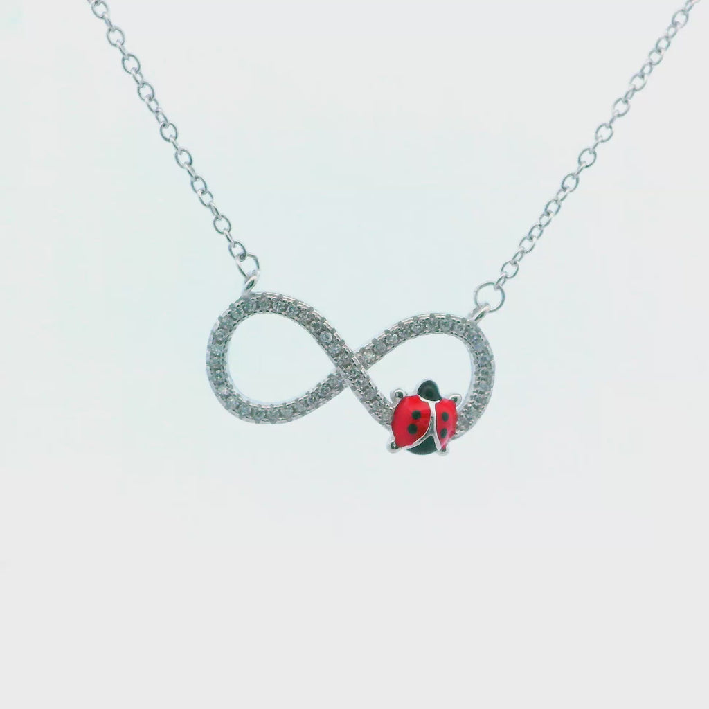 Women 925 Silver Rhodium Infinity ladybug Pendant