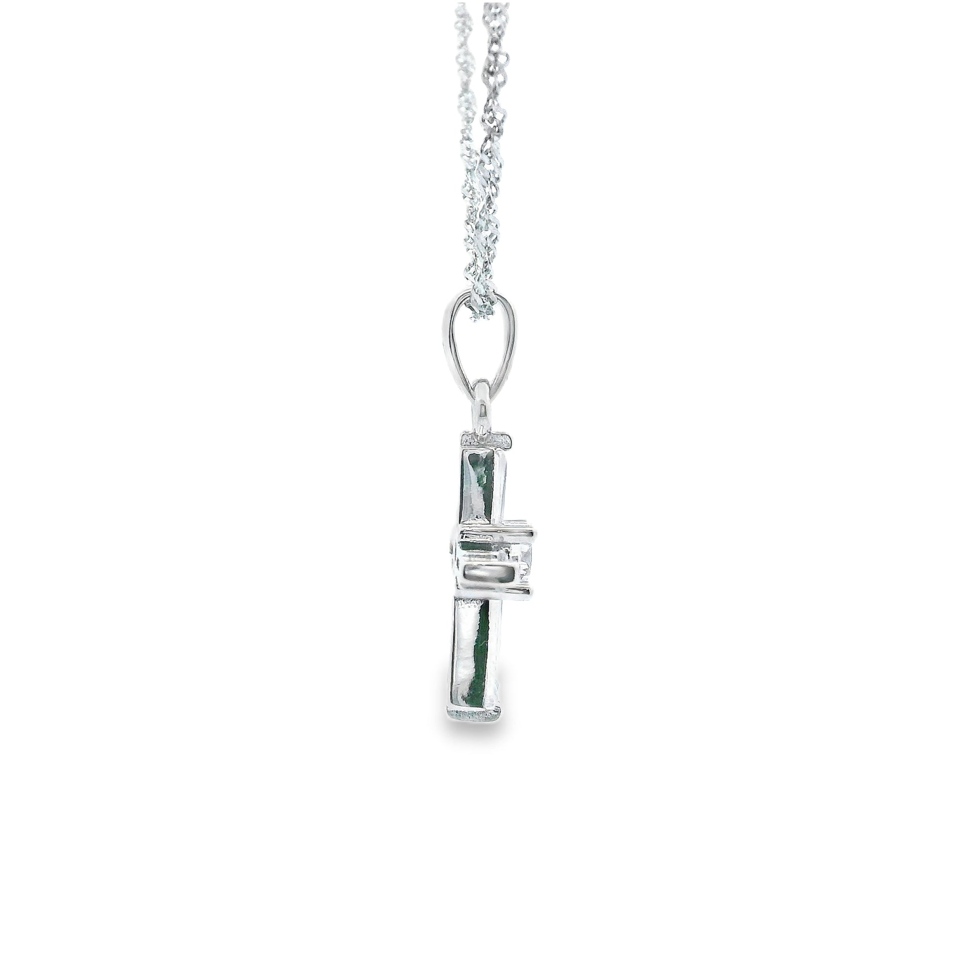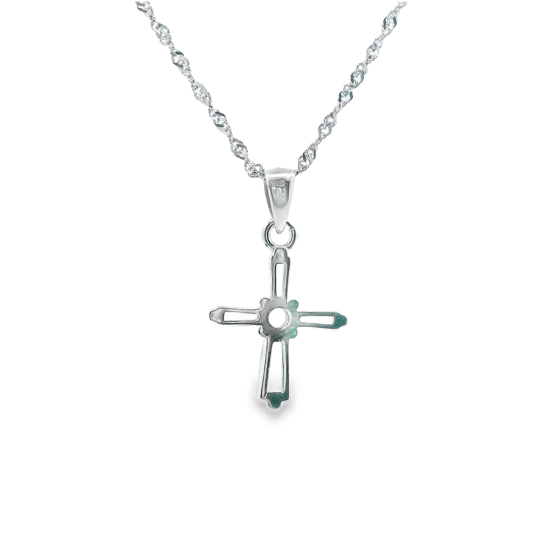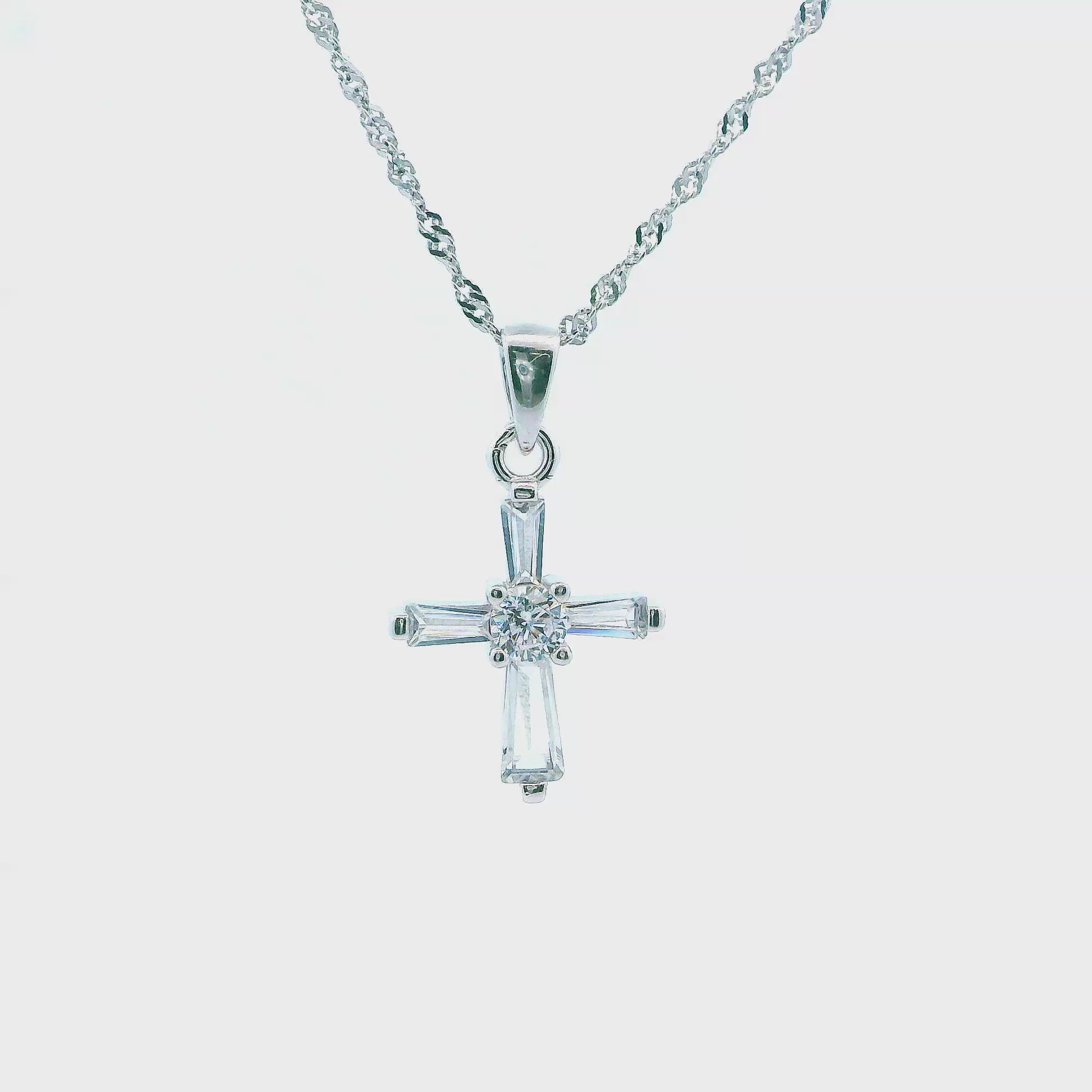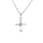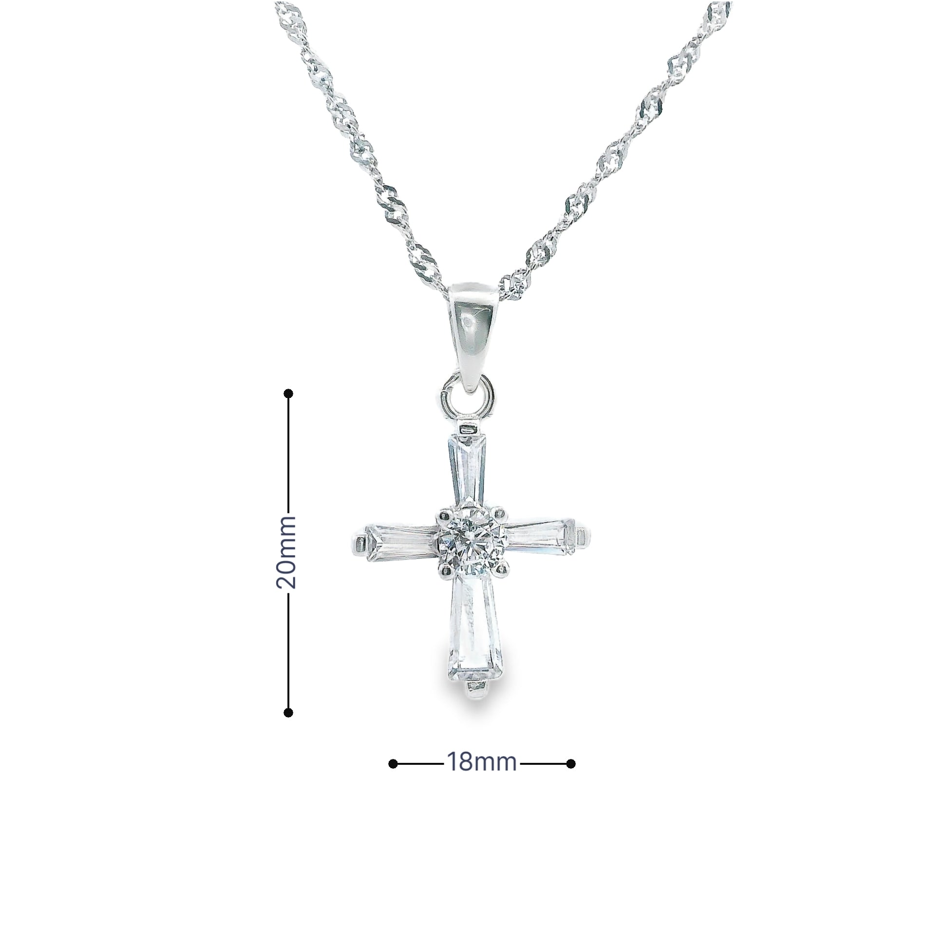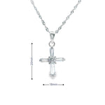 This refined cross pendant combines spiritual significance with timeless design, crafted from 925 sterling silver and enhanced with rhodium plating. The compact proportions make it ideal for layering or wearing as a standalone piece, offering versatility in styling options. Rhodium's protective coating resists tarnishing and oxidation, maintaining the pendant's pristine appearance through regular wear.