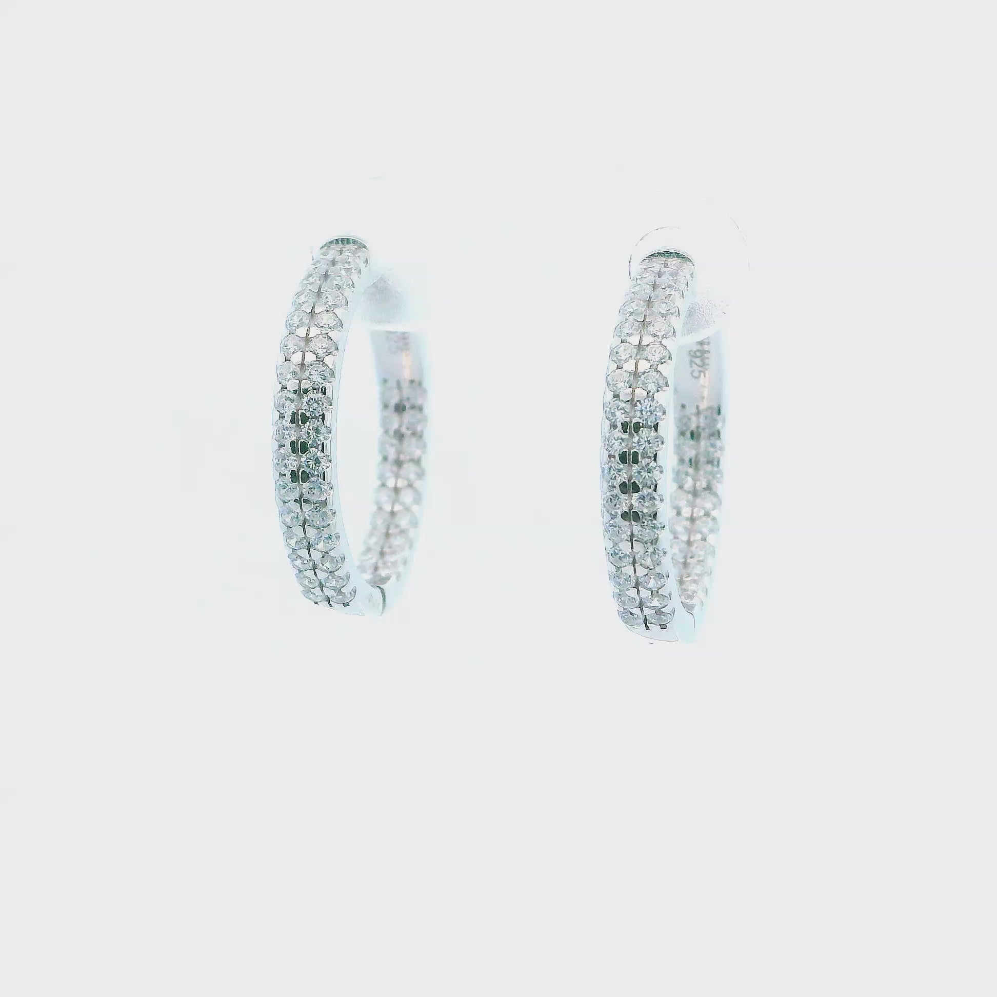 Silver 925S Earrings Double Zirconia Hoop