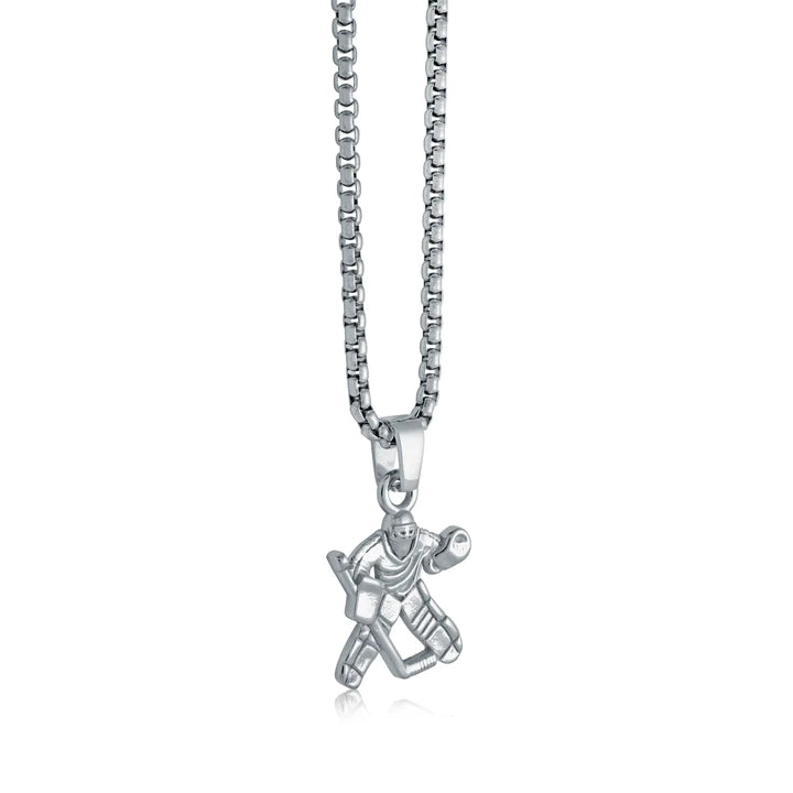 Pendentif gardien de but en acier inoxydable plaqué ionique avec chaîne
