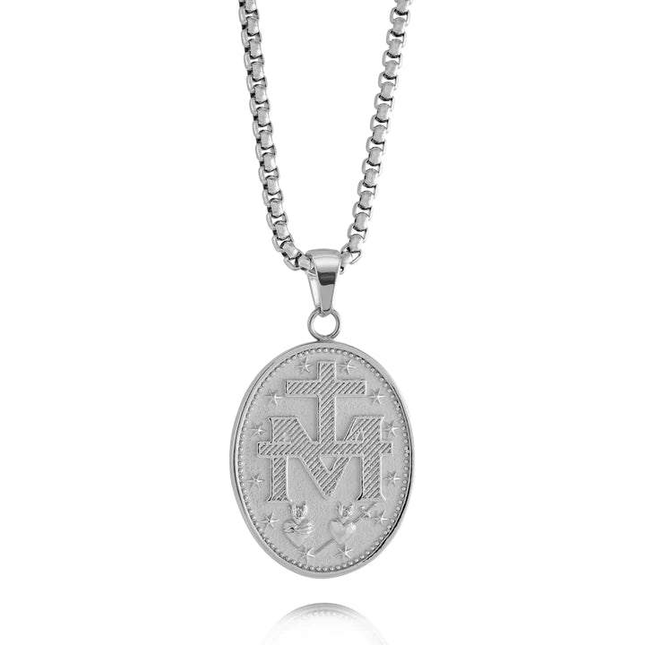 Collier Pendentif Réversible Coeur de Marie en Acier Inoxydable