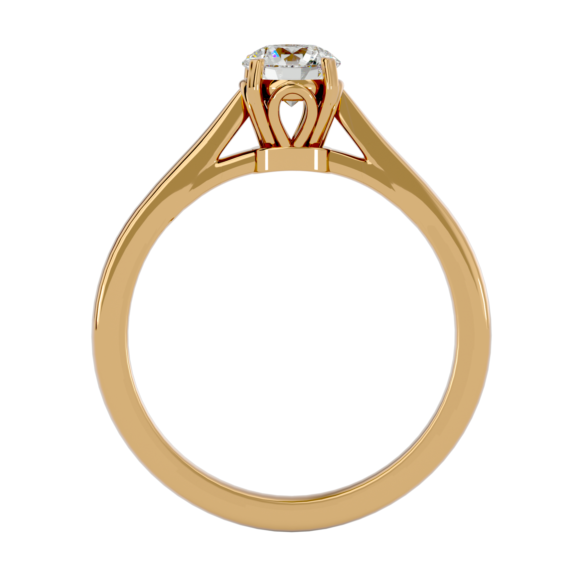 Cette bague classique en or 14 carats avec diamant solitaire rond est fabriquée à Montréal et est ornée de diamants de laboratoire de qualité VS EF. Des diamants naturels et de l'or 14 carats sont disponibles sur demande pour ce produit.