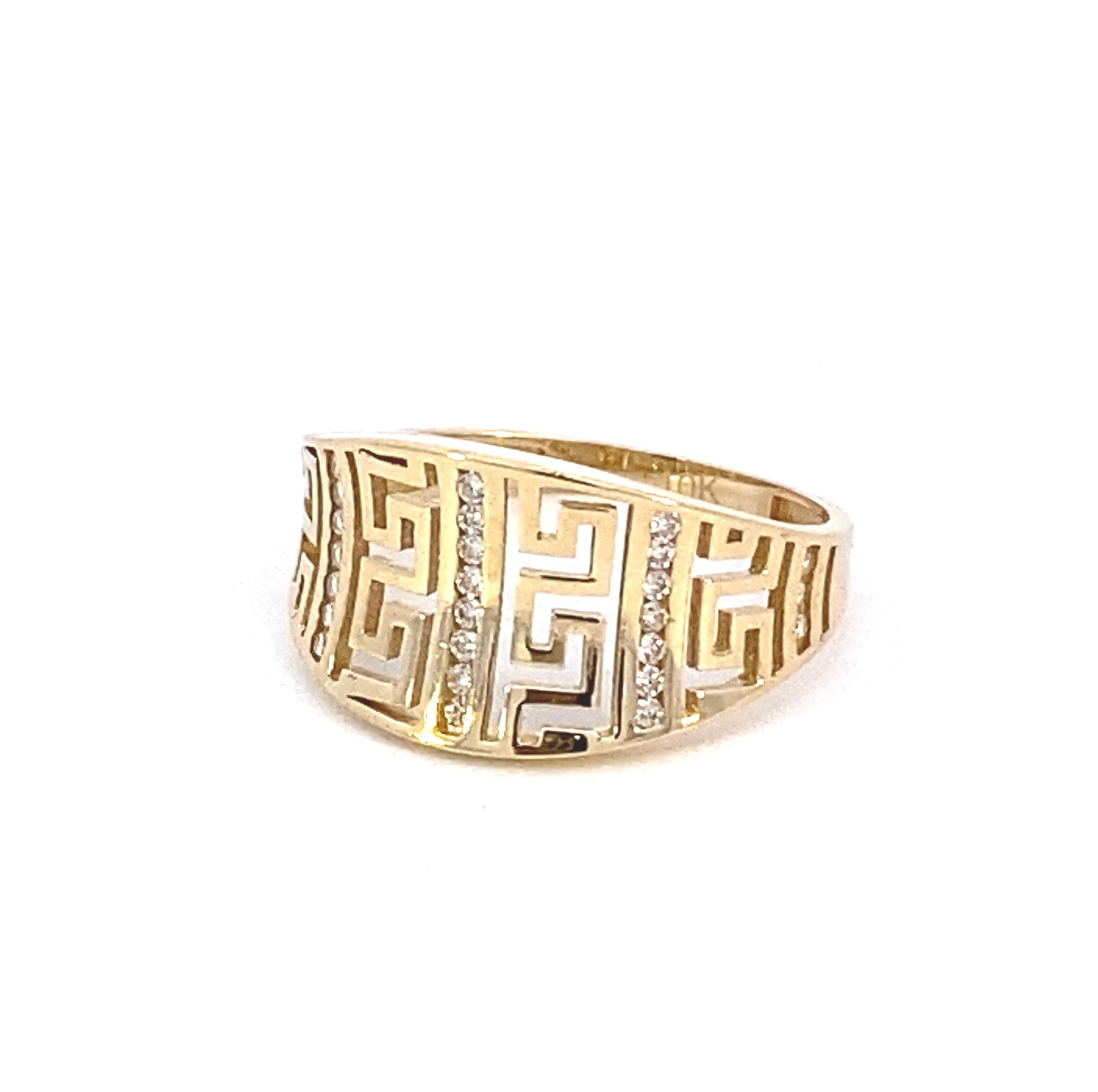 Bague en or jaune 10 carats avec pierres de zircone.