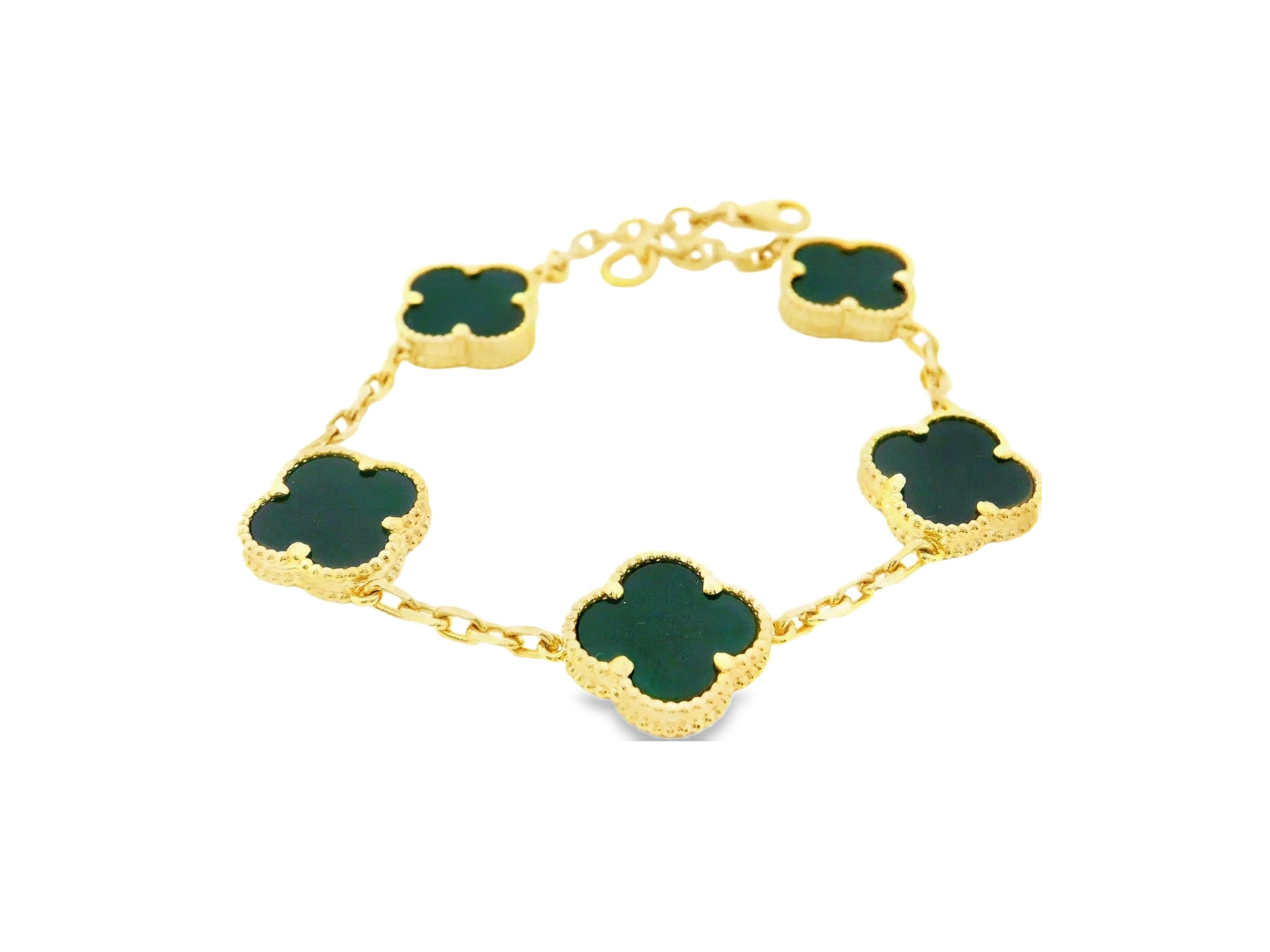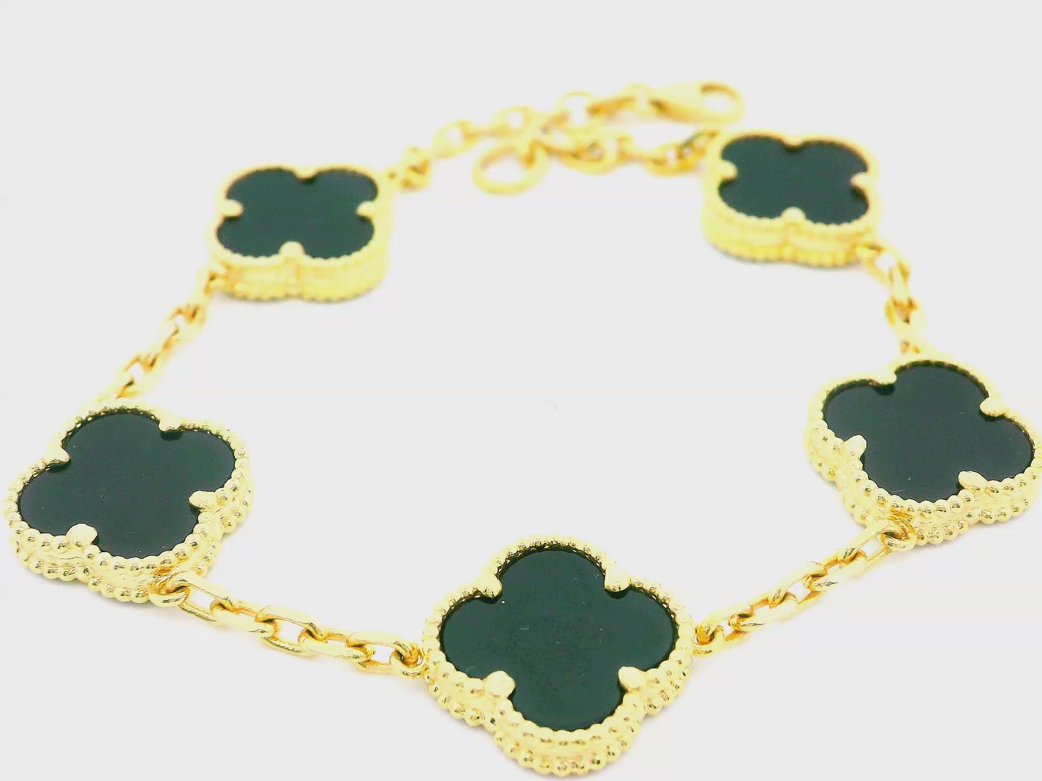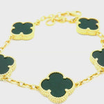 This elegant 10K gold bracelet features a striking large black clover charm, combining timeless design with quality craftsmanship. The substantial clover motif serves as a bold focal point, while the genuine 10K gold construction ensures durability and lasting brilliance. Perfect for those seeking a sophisticated accessory that blends symbolic meaning with refined style, this piece transitions effortlessly from everyday wear to special occasions.