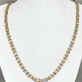The 10K Gold Medusa Necklace Ensemble is the perfect luxurious accessory for any look. It features a 10K three-colour necklace made from yellow, white, and rose gold, and features an exquisite Greek key design. The set also includes a matching bracelet for an added touch of sophisticated elegance.